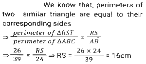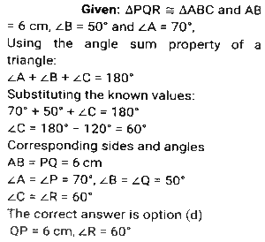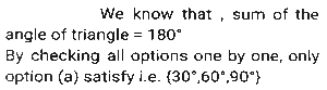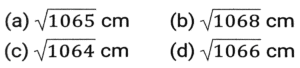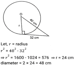 Geometry (Part-4)Total Questions: 5021. From a point T, the length of the tangent to a circle is 32 cm and the distance of T from the centre is 40 cm. The diameter (in cm) of the circle is: [SSC CGL 12/09/2024 (2nd Shift)](a) 36(b) 16(c) 32(d) 48Correct Answer: (d) 48Solution:22. A pair of straight lines from an external point F intersects a circle at A and B (FA < FB) and touches the circle at C. O is the centre of the circle. Given that ∠ACF = 50º and ∠AFC = 30º find ∠AOB. [SSC CGL 12/09/2024 (3rd Shift)](a) 80°(b) 90°(c) 100°(d) 40°Correct Answer: (c) 100°Solution:23. If ∆PQR ≅ ∆ABC, AB = 6cm ∠B = 50º and ∠A = 70º, then which of the following is true? [SSC CGL 13/09/2024 (1st Shift)](a) QR = 6cm, ∠Q = 60º(b) QR = 6cm, ∠R = 60º(c) QP = 6cm, ∠P = 60º(d) QP = 6cm, ∠R = 60ºCorrect Answer: (d) QP = 6cm, ∠R = 60ºSolution:24. A circle's centre is connected to its 50 cm long chord by a perpendicular that is 21 cm long. Find the circle's radius. [SSC CGL 13/09/2024 (2nd Shift)](a)(b)(c)(d)Correct Answer: (d)Solution:25. ABC is an equilateral triangle. P, Q and R are the mid-points of sides AB, BC and CA, respectively. If the length of the side of the triangle ABC is 11 cm, then the area (in cm²) of ∆PQR is: [SSC CGL 13/09/2024 (2nd Shift)](a)(b)(c)(d)Correct Answer: (c)Solution:26. P and Q are two fixed points 10 cm apart, and R is a point on PQ such that PR = 6 cm. By what percentage is the length of QR decreased when the length of PR is increased by 5% ? [SSC CGL 13/09/2024 (2nd Shift)](a) 8.5%(b) 7.5%(c) 7%(d) 8%Correct Answer: (b) 7.5%Solution:27. Two circles, centred at P and Q intersect at two points C and D. AB is tangent to the two circles at A and B. If ∠ADB = 68º, then ∠ACB = ________ . [SSC CGL 13/09/2024 (3rd Shift)](a) 132°(b) 112°(c) 124°(d) 102°Correct Answer: (b) 112°Solution:28. The perimeters of two similar triangles ∆RST and ∆ABC are 26 cm and 39 cm, respectively. If AB = 24cm, then RS is _________. [SSC CGL 13/09/2024 (3rd Shift)](a) 16 cm(b) 36 cm(c) 18 cm(d) 24 cmCorrect Answer: (a) 16 cmSolution:29. In the following sets, which set represents the angles of a triangle ? [SSC CGL 13/09/2024 (3rd Shift)](a) {30°, 60°, 90°}(b) {80°, 50°, 90°}(c) {30°, 50°, 110°}(d) {30°, 50°, 90°}Correct Answer: (a) {30°, 60°, 90°}Solution:30. What is the difference in area (in cm²) of ∆ABC having sides of 10 cm, 20 cm and 20 cm, and a right angled triangle ∆PQR with hypotenuse of 13 cm and one of the perpendiculars of 12 cm? [SSC CGL 17/09/2024 (1st Shift)]Note: √2 = 1.41, √3 = 1.73, √7 = 2.65, √13 = 3.61, √15 = 3.87, √21 = 4.58(a) 70.05(b) 36.57(c) 66.75(d) 53.58Correct Answer: (c) 66.75Solution:Submit Quiz« Previous12345Next »