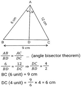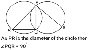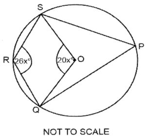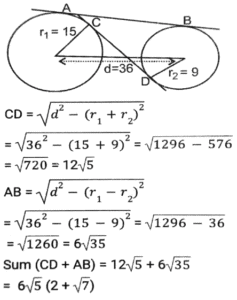 Geometry (Part-5)Total Questions: 5011. In ∆АВС, АВ = 6 cm, BC = 9 cm and AC = 12 cm. If AD is the angle bisector of ∠BAC, where D is a point on BC, then find DC. [SSC CGL 24/09/2024 (3rd Shift)](a) 9(b) 6(c) 3(d) 7Correct Answer: (b) 6Solution:12. A line cuts two concentric circles. The length of chords formed by this line on the circles is 6 cm and 18 cm. Find the difference in the squares of the radii of two circles. [SSC CGL 24/09/2024 (3rd Shift)](a) 90(b) 120(c) 60(d) 72Correct Answer: (d) 72Solution:13. It is always possible to draw a circle passing through_________non-collinear points in a plane. [SSC CGL 25/09/2024 (1st Shift)](a) 3(b) 6(c) 5(d) 4Correct Answer: (a) 3Solution:It is always possible to draw a circle passing through 3 non-collinear points in a plane.14. If the lengths of two sides of an isosceles triangle are 6 cm and 12 cm, then find the length of the third side. [SSC CGL 25/09/2024 (1st Shift)](a) 8 cm(b) 6 cm(c) 12cm(d) 14 cmCorrect Answer: (c) 12cmSolution:In triangle Third side < 18(12 + 6) Third side > 6(12 - 6) For isosceles triangle side must be equal to 12 or 6 cm but third side should be greater than 6cm. Hence, third side = 12cm15. The centres of two circles are 36 cm apart. If the radii of these two circles are 15 cm and 9 cm, respectively, then what is the sum of the lengths (in cm) of direct a common tangent and a transverse common tangent of these two circles? [SSC CGL 25/09/2024 (1st Shift)](a) 6√5 (√7+2)(b) 6√7 (√5+2)(c) 6√5 (√5+2)(d) 6√7 (√7+2)Correct Answer: (a) 6√5 (√7+2)Solution:16. The side BC of ∆ABC is produced to a point D. If AC = BC and ∠BAC = 70º then find the value of ∠ACD - ∠ABC [SSC CGL 25/09/2024 (1st Shift)](a) 70°(b) 60°(c) 75°(d) 45°Correct Answer: (a) 70°Solution:17. In a quadrilateral ABCD, AB = BC, AD = DC, ∠ABD = 68º, ∠ADB = (2y - 7)º, ∠BDC = 33º ∠DBC = (3x + 2)º. Then the value of 2x + 3y is: [SSC CGL 25/09/2024 (2nd Shift)](a) 108º(b) 144º(c) 104º(d) 118ºCorrect Answer: (c) 104ºSolution:18. The two circles intersect at two points P and Q. PR and PS are diameters of the two circles. What is ∠PQR ? [SSC CGL 25/09/2024 (2nd Shift)](a) 90º(b) 0º(c) 45º(d) 60ºCorrect Answer: (a) 90ºSolution:19. A circular arc whose radius is 14 cm, makes an angle of 45° at the centre. Find the perimeter (in cm) of the sector. (Use π = 22/7 ) [SSC CGL 25/09/2024 (2nd Shift)](a) 38(b) 28(c) 39(d) 34Correct Answer: (c) 39Solution:20. In the figure shown above, quadrilateral PQRS has its vertices on the circumference of the circle with centre O. If m∠QOS = 20x° and m∠QRS = 26x°, then what is the value of 'x' ? [SSC CGL 25/09/2024 (3rd Shift)](a) 6(b) 5(c) 4(d) 3Correct Answer: (b) 5Solution:Submit Quiz« Previous12345Next »