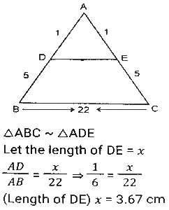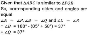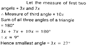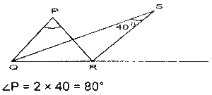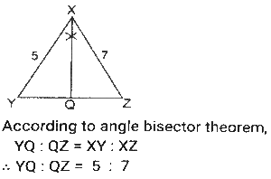 Geometry (Part-7)Total Questions: 5021. In ∆ABC, ∠A = 85º and ∠C = 58º. If ∆PQR is similar to ∆ABC , and in correspondence, then find ∠Q . [SSC CHSL Tier II (02/11/2023)](a) 37º(b) 85º(c) 58°(d) 73°Correct Answer: (a) 37ºSolution:22. In ∆XYZ if XY = 5cm, XZ = 7cm and Q is a point on YZ such that XQ bisects ∠X then YQ : QZ is: [SSC CHSL Tier II (10/01/2024)](a) 5 : 7(b) 7 : 12(c) 7 : 5(d) 5 : 12Correct Answer: (a) 5 : 7Solution:23. The measures of two angles of a triangle are in the ratio 3 : 7. If the sum of these two measures is equal to the measure of the third angle, then find the smallest angle. [SSC CHSL Tier II (10/01/2024)](a) 27º(b) 3º(c) 9º(d) 36ºCorrect Answer: (a) 27ºSolution:24. An equilateral triangle ABC surmounts a square BCDE. The value of ∠EAB + 3∠AEB is: [SSC CGL Tier II (26/10/2023)](a) 60°(b) 80°(c) 280°(d) 240°Correct Answer: (a) 60°Solution:25. One chord of a circle is given as 20.5 cm. Then the radius (r) of the circle must be: [SSC CGL Tier II (26/10/2023)](a) r = 10cm(b) r < 10.25(c) r > 10.25(d) r ≥ 10.25Correct Answer: (d) r ≥ 10.25Solution:26. If the hypotenuse of a right-angled triangle is 29 cm and the sum of the other two sides is 41 cm, then the difference between the other two sides is: [SSC CPO 03/10/2023 (1st Shift)](a) 2 cm(b) 5 cm(c) 10 cm(d) 1 cmCorrect Answer: (d) 1 cmSolution:27. For a triangle ABC, D and E are two points on AB and AC such that AD = 1/6 AB, AE = 1/6 AC. If BC = 22 cm, then DE is ______ .(Consider up to two decimals) [SSC CPO 03/10/2023 (2nd Shift)](a) 3.67 cm(b) 1.67 cm(c) 1.33 cm(d) 3.33 cmCorrect Answer: (a) 3.67 cmSolution:28. A sector of a circle has a central angle of 45° and an arc length of 22 cm. Find the radius of the circle. (Use π = 22/7) [SSC CPO 03/10/2023 (2nd Shift)](a) 28 cm(b) 35 cm(c) 36 cm(d) 32 cmCorrect Answer: (a) 28 cmSolution:29. In two circles centered at O and O', the distance between the centers of both circles is 17 cm. The points of contact of a direct common tangent between the circles are P and Q If the radii of both circles are 7 cm and 15 cm, respectively, then the length of PQ is equal to: [SSC CPO 03/10/2023 (3rd Shift)](a) 15 cm(b) 22 cm(c) 10 cm(d) 17 cmCorrect Answer: (a) 15 cmSolution:30. PQR is a triangle. The bisectors of the internal angle ∠Q and external angle ∠R intersect at S. If ∠QSR = 40°, then ∠P is: [SSC CPO 04/10/2023 (1st Shift)](a) 80°(b) 60°(c) 40°(d) 30°Correct Answer: (a) 80°Solution:Submit Quiz« Previous12345Next »