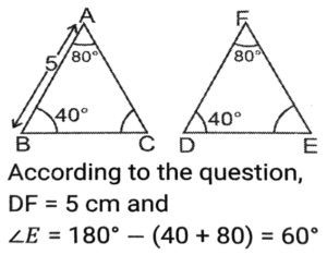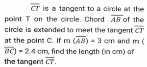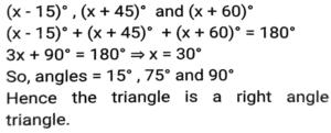 Geometry (Part-8)Total Questions: 5041. Explain it- [SSC CHSL 14/08/2023 (3rd Shift)](a) 4.2(b) 3.6(c) 3.2(d) 4.0Correct Answer: (b) 3.6Solution:42. The area of two similar triangles TUV and PQR are 18cm² and 32cm² respectively. If TU = 6 cm, then PQ is equal to: [SSC CHSL 14/08/2023 (4th Shift)](a) 4 cm(b) 8 cm(c) 2 cm(d) 64 cmCorrect Answer: (b) 8 cmSolution:43. An equilateral triangle has sides of 18 cm each. The ratio of the inradius to circumradius of the triangle is: [SSC CHSL 14/08/2023 (4th Shift)](a) 2 : 1(b) 3 : 2(c) 3 : 4(d) 1 : 2Correct Answer: (d) 1 : 2Solution:44. In ∆CAB, ∠CAB = 90º and AD ⊥ BC. If AC = 24 cm, AB = 10cm, then find the value of AD (in cm). [SSC CHSL 17/08/2023 (1st Shift)](a) 9.23(b) 8.23(c) 7.14(d) 10.23Correct Answer: (a) 9.23Solution:45. In figure, ∠ADB is equal to: [SSC CHSL 17/08/2023 (1st Shift)](a) 40°(b) 60°(c) 80°(d) 50°Correct Answer: (c) 80°Solution:46. In the figure, chords XY = x cm and PQ = 10 cm are intersecting each other at point L. Find the length of XY (in cm). [SSC CHSL 17/08/2023 (1st Shift)](a) 22(b) 21(c) 20(d) 23Correct Answer: (c) 20Solution:47. An arc of length 33 π cm subtends an angle of 132° at the centre of the circle. Find the radius of the circle. [SSC CHSL 17/08/2023 (2nd Shift)](a) 45 cm(b) 40 cm(c) 30 cm(d) 35 cmCorrect Answer: (a) 45 cmSolution:48. Three angles of a triangle are (x -15)°, (x + 45)º and (x + 60)º . Identify the type of triangle. [SSC CHSL 17/08/2023 (2nd Shift)](a) Obtuse angle triangle(b) Right angle triangle(c) Isosceles triangle(d) Equilateral triangleCorrect Answer: (b) Right angle triangleSolution:49. It is given that ∆ABC ≅ ∆FDE and AB = 5 cm, ∠B = 40º and ∠A = 80º Then which of the following is true? [SSC CHSL 17/08/2023 (3rd Shift)](a) DE = 5 cm, ∠D = 60º(b) DE = 5cm ∠E = 60º(c) DF = 5cm ∠F = 60º(d) DF = 5cm ∠E = 60ºCorrect Answer: (d) DF = 5cm ∠E = 60ºSolution:50. If three angles of a triangle are (2y + 40º), (5y - 60º), and (3y - 80º), then what is the value of y ? [SSC CHSL 17/08/2023 (3rd Shift)](a) 30°(b) 24°(c) 28°(d) 26°Correct Answer: (c) 28°Solution:According to the question, 2y + 40º + 5y - 60º + 3y - 80º = 180º 10y = 180º + 100º = 280º y = 28ºSubmit Quiz« Previous12345