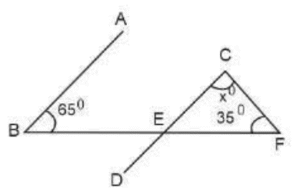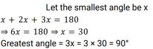 Geometry (Railway Maths) (Part – III)Total Questions: 5031. The length of each of the two equal sides of an isosceles triangle is 5 cm each and the length of its base is 8 cm. The area (in cm²) of the triangle is: [Group D 13/09/2022 (Afternoon)](a) 15(b) 9(c) 18(d) 12Correct Answer: (d) 12Solution:32. In a triangle, if one angle measures twice the smallest angle and the third one measures three times the smallest angle, then the measure of the greatest angle is: [Group D 14/09/2022 (Morning)](a) 90°(b) 30°(c) 45°(d) 120°Correct Answer: (a) 90°Solution:33. m and n are two parallel lines. If l is a transversal intersecting m and n, then the sum of the interior angles formed on the same side of l is equal to: [Group D 14/09/2022 (Afternoon)](a) 270°(b) 360°(c) 180°(d) 90°Correct Answer: (c) 180°Solution:From the properties of parallel lines, When two parallel lines are intersected by a transversal then sum of the interior angles formed on the same side of the transversal = 180°34. If the lengths of the sides of a triangle are x+1, 7-x and 4x-2, then the value of x for which the triangle represents an isosceles triangle is_________. [Group D 14/09/2022 (Afternoon) ](a) 1.8(b) 2.4(c) 3(d) 1Correct Answer: (a) 1.8Solution:In an isosceles triangle, two sides are equal in length. 4x - 2 = 7 - x ⇒ 4x + x = 7 + 2 ⇒ 5x = 9 ⇒ x = 1.835. In an isosceles triangle, the vertex angle measures 80°. What is the measure of each of the base angles? [Group D 14/09/2022 (Evening) ](a) 50° and 50°(b) 60° and 40°(c) 60° and 50°(d) 60° and 60°Correct Answer: (a) 50° and 50°Solution:36. As per the figure given below ∆ QRS ≅ _______.[Note: Diagram is not drawn to scale or measurements indicated.] [Group D 15/09/2022 (Morning) ](a) 🛆QTP(b) 🛆QPT(c) 🛆PTQ(d) 🛆TPQCorrect Answer: (b) 🛆QPTSolution:37. In a triangle PQR, <P = 30° and the straigth line UV is drawn parallel to QR, intersecting PQ at S and PR at T. Which of the following is always true? [Group D 17/09/2022 (Morning) ](1) PS / PQ = PT / PR (2) ST = QR/2 (3) The triangle PST is similar to the triangle PQR.(a) Only 1 and 3(b) Only 1 and 2(c) All of 1 , 2 and 3(d) Only 1Correct Answer: (a) Only 1 and 3Solution:38. AD is the altitude of an isosceles triangle ABC in which AB = AC. Which of the following is true for AD? [Group D 17/09/2022 (Morning) ](a) AD bisects <A(b) AD bisects <C(c) AD does not bisect <A(d) AD bisects <BCorrect Answer: (a) AD bisects <ASolution:39. In the given figure, AB is parallel to CD. What is the value of x° ? [Group D 17/09/2022 (Afternoon) ](a) 110°(b) 30°(c) 80°(d) 100°Correct Answer: (c) 80°Solution:40. In triangle DEF, side EF is produced to G. If <DFG = 110° and EF = DF, then <DEF measures: [Group D 18/09/2022 (Morning) ](a) 40°(b) 70°(c) 55°(d) 45°Correct Answer: (c) 55°Solution:Submit Quiz« Previous12345Next »