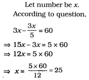 1. If 3 times a number exceeds its 3/5 M by 60, then what is the number?