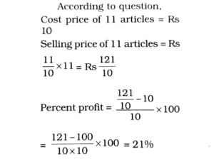 4. If I would have purchased 11 articles for Rs. 10 and sold all the articles at the rate of 10 for Rs. 11, the profit percent would have been: