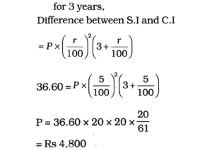 5. If the difference between the compound interest and simple interest on a sum at 5% rate of interest per annum for three years is Rs. 36.60, then the sum is: