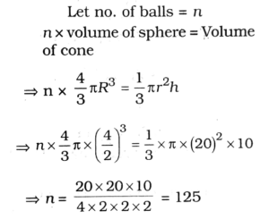 10. A solid metallic cone of height 10 cm, radius of base 20 cm is melted to make spherical balls each of 4 cm diameter. How many such balls can be made?