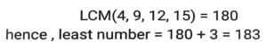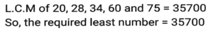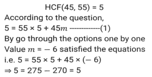HCF and LCM (Part-2)Total Questions: 541. The LCM and HCF of two numbers are 1105 and 5. If the LCM is 17 times the first number, then find the two numbers. [SSC CPO 04/10/2023 (2nd Shift)](a) 55 and 85(b) 65 and 75(c) 60 and 80(d) 65 and 85Correct Answer: (d) 65 and 85Solution:2. If the HCF of 45 and 55 is expressible in the form of 55 x 5 + 45m, then what is the value of m? [SSC CPO 04/10/2023 (3rd Shift)](a) 5(b) -6(c) -5(d) 6Correct Answer: (b) -6Solution:3. Find the least number which when divided by 4, 9, 12 and 15, leaves the remainder 3 in each case. [SSC CPO 04/10/2023 (3rd Shift)](a) 193(b) 183(c) 360(d) 180Correct Answer: (b) 183Solution:4. Determine the LCM of two numbers if their HCF is 12 and their ratio is 13 : 15. [SSC CPO 04/10/2023 (3rd Shift)](a) 2450(b) 1780(c) 1890(d) 2340Correct Answer: (d) 2340Solution:Let number be 13x and 15x respectively Then , HCF(13x ,15x) = x x = 12 So, Number = 156 and 180 Hence, LCM (156, 180) = 23405. Which of the following numbers leaves the remainder equal to the highest common factor of 6, 8 and 9, when divided by 6, 8 and 9? [SSC CPO 04/10/2023 (3rd Shift)](a) 506(b) 575(c) 291(d) 433Correct Answer: (d) 433Solution:6. Find the least number which is exactly divisible by 20, 28, 34, 60 and 75. [SSC CPO 05/10/2023 (1st Shift)](a) 34500(b) 35900(c) 35700(d) 36220Correct Answer: (c) 35700Solution:7. Which is the largest number that divides each of 1036, 1813 and 3885 without leaving any remainder? [SSC CPO 05/10/2023 (1st Shift)](a) 259(b) 111(c) 333(d) 37Correct Answer: (a) 259Solution:8. What is the LCM of 0.15, 0.18 and 0.45? [ SSC CPO 05/10/2023 (2nd Shift)](a) 0.6(b) 0.9(c) 0.81(d) 0.09Correct Answer: (b) 0.9Solution:9. What will be the least number which when doubled will be exactly divisible by 12, 14, 16 and 18? [SSC CPO 05/10/2023 (2nd Shift)](a) 636(b) 226(c) 428(d) 504Correct Answer: (d) 504Solution:10. The LCM of two numbers is five times their HCF. If the product of the two numbers is 20480, then find their HCF and LCM, respectively. [SSC CPO 05/10/2023 (3rd Shift)](a) 64 and 320(b) 56 and 280(c) 48 and 240(d) 46 and 230Correct Answer: (a) 64 and 320Solution:Submit Quiz123456Next »