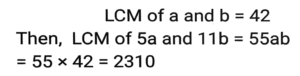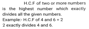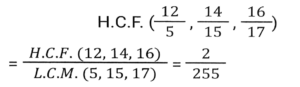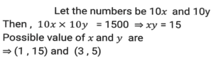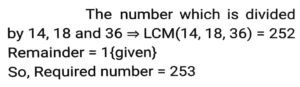 HCF and LCM (Part-2)Total Questions: 5431. The least number which when divided by 14, 18 and 36 and leaves 1 as remainder in each case is: [SSC MTS 16/05/2023 (Morning)](a) 250(b) 252(c) 253(d) 251Correct Answer: (c) 253Solution:32. What will be the ratio of the Least Common Multiple and Highest Common Factor of 12, 24 and 36? [SSC MTS 13/06/2023 (Afternoon)](a) 3:1(b) 4:1(c) 6:1(d) 2:1Correct Answer: (c) 6:1Solution:33. What is the least number of students in a class such that they can make rows of 10, 15 and 20 and also the total number of students is a perfect square? [SSC MTS 15/06/2023 (Morning)](a) 6400(b) 1600(c) 900(d) 1800Correct Answer: (c) 900Solution:34. What is the HCF of 513 and 1017? [SSC MTS 16/06/2023 (Evening)](a) 15(b) 8(c) 9(d) 13Correct Answer: (c) 9Solution:35. The Least Common Multiple of three different numbers is 40. Which of the following cannot be their Highest Common Factor? [SSC MTS 19/06/2023 (Morning)](a) 20(b) 25(c) 5(d) 10Correct Answer: (b) 25Solution:Facter of 40 = 2 × 2 × 2 × 5 By the option 25 never be the HCF36. What is the smallest perfect square which is divisible by both 8 and 12? [SSC MTS 20/06/2023 (Afternoon)](a) 100(b) 144(c) 121(d) 196Correct Answer: (b) 144Solution:37. The product of the two numbers is 1500 and their HCF is 10. The number of such possible pairs is/are: [SSC CGL Tier II (02/03/2023)](a) 1(b) 3(c) 4(d) 2Correct Answer: (d) 2Solution:38. Calculate the HCF of 12/5, 14/15, & 16/17 [SSC CGL 03/12/2022 (1st Shift)](a)(b)(c)(d)Correct Answer: (c)Solution:39. Choose the correct statement from the following. [SSC CGL 06/12/2022 (2nd Shift)](a) HCF is the least common multiple of the given numbers.(b) HCF of two or more numbers is the highest number which perfectly divides all the given numbers.(c) HCF is also called the least common divisor.(d) In prime factorisation method of HCF, the multiples of all the given numbers are listed.Correct Answer: (b) HCF of two or more numbers is the highest number which perfectly divides all the given numbers.Solution:40. The least common multiple of a and b is 42. The LCM of 5a and 11b is: [SSC CPO 09/11/2022 (Morning)](a) 2310(b) 4620(c) 210(d) 462Correct Answer: (a) 2310Solution:Submit Quiz« Previous123456Next »