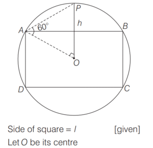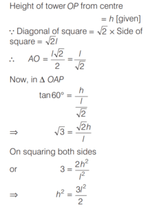 5. Each corner of a square subtends an angle of 60° at the tip of a tower of height h m standing at the centre of the square. If l is the length of each side of the square, then what is h² equal to ? [2018 (I) Morning Shift]