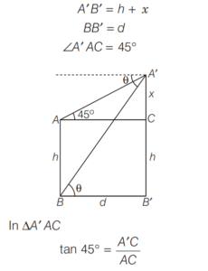 7. Let AB represents a building of height h metre with A being is top, B being its bottom. Let A' B' represents a tower of height (h + x) metre (x > 0) with A' being its top and B' being its bottom. Let B B' = d metre. Let the angle of elevation of A' as seen from A be 45°. [2017 (II) Evening Shift]