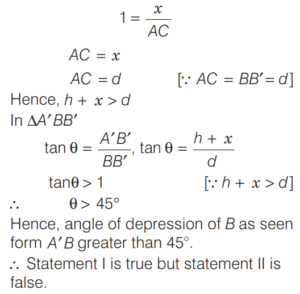 Statement II : The angle of depression of B as seen from A' is less than 45°.