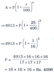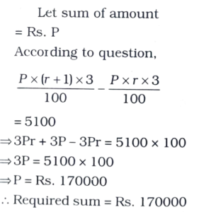 HSSC CET Exam 05.11.2022 (Shift-II)Total Questions: 1001. A, B and C invested Rs. 80,000, Rs. 40,000 and Rs. 80,000 respectively in a business. A left after six months. If total profit after eight months is Rs. 40,050, then what is the share of B in the Profit ?(1) Rs. 5,000(2) Rs. 9,000(3) Rs. 8,000(4) Rs. 8,900(5) Not attemptedCorrect Answer: (4) Rs. 8,900Solution:2. A container contains 40 litres of milk. From this container 4 litres of milk was taken out and replaced by 4 litres of water. This process was repeated further two times. How much milk is left in the container ?(1) 28 litres(2) 29.16 litres(3) 26.34 litres(4) 27.36 litres(5) Not attemptedCorrect Answer: (2) 29.16 litresSolution:Milk Lift in the container3. A is 30% more efficient than B. How much time will they, working together, take to complete a job which A alone could have done in 23 days?(1) 20 3/17days(2) 15 days(3) 11 days(4) 13 days(5) Not attemptedCorrect Answer: (4) 13 daysSolution:4. Six bells commence tolling together and toll at intervals of 2, 4, 6, 8, 10 and 12 seconds respectively. In 30 minutes, how many times do these six bells toll together?(1) 15(2) 16(3) 4(4) 10(5) Not attemptedCorrect Answer: (2) 16Solution:5. LCM of two prime numbers x and y(x>y) is 161. The value of (3y - x) is(1) 1(2) 2(3)-2(4)-1(5) Not attemptedCorrect Answer: (3)-2Solution:6. If m = - 4 and n = - 2 , then the(1)-126(2)-128(3)-120(4)-124(5) Not attemptedCorrect Answer: (1)-126Solution:7. If 1/3.718 = 0.2689 value of , then the 1/0.0003718 is:(1) 26890(2) 0.2689(3) 2689(4) 2.689(5) Not attemptedCorrect Answer: (3) 2689Solution:8. The prinicipal that amounts to Rs. 4,913 in 3 years at 6 1/4% per annum compound interest compounded annually is:(1) Rs. 4,085(2) Rs. 4,096(3) Rs. 3,096(4) Rs. 4,076(5) Not attemptedCorrect Answer: (2) Rs. 4,096Solution:At compound interest9. A sum was invested at simple interest at a certain rate for 3 years. Had it been invested at 1% higher rate of simple interest for the same time, it would have fetched Rs. 5,100 more. The sum is :(1) Rs. 1,50,000(2) Rs. 1,70,000(3) Rs. 1,20,000(4) Rs. 1,25,000(5) Not attemptedCorrect Answer: (2) Rs. 1,70,000Solution:10. The length of one side of a rightangled triangle is twice the length of the other side and the length of hypotenuse is 10 cm. The area of the triangle is:(1) 40 cm 2(2) 50 cm 2(3) 2 cm 2(4) 33 1/3cm 2(5) Not attemptedCorrect Answer: (3) 2 cm 2Solution:Submit Quiz12345678910Next »