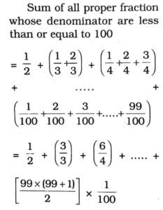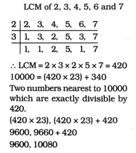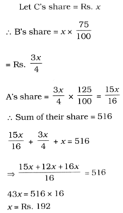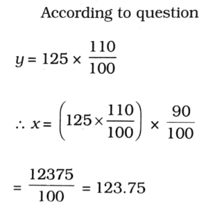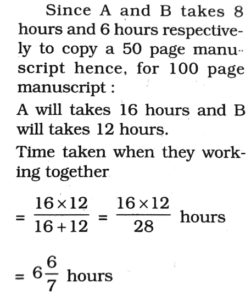 HSSC CET Exam (06.11.2022-Shift II)Total Questions: 10091. The two numbers nearest to 10,000 which are exactly divisible by each of 2, 3, 4, 5, 6 and 7 are:(1) 9320, 10080(2) 9660, 10060(3) 10080, 10340(4) 9660, 10080(5) Not attemptedCorrect Answer: (3) 10080, 10340Solution:92. The sum of all proper fractions whose denominators are less than or euqal to 100 is:(1) 1925(2) 2124(3) 2475(4) 22 ¼(5) Not attemptedCorrect Answer: (3) 2475Solution:93. If 1²+ 2² + 3²+....+ 10² = 385, then (2²+ 4² + 6² +...+20²) Is equal to:(1) 1540(2) 1155(3) 385 x 385(4) 770(5) Not attemptedCorrect Answer: (1) 1540Solution:94. A takes 8 hours to copy a 50-page manuscript while B can copy the same manuscript, in 6 hours. How many hours would it take them to copy a similar 100-page manuscript. if they work together?(1) 9 hours(2) 9 hours(3) 14 hours(4) 6 ⁶⁄₇ hours(5) Not attemptedCorrect Answer: (4) 6 ⁶⁄₇ hoursSolution:95. Two friends invested Rs. 30,000 and Rs. 50,000 in a business. They earned a profit of Rs. 16.000 at the end of the year. One half of the proft was divided equally between them and other half was divided in the ratio of their capitals. How much did each of them receive?(1) Rs. 7,200, Rs. 8,800(2) Rs. 7,400, Rs. 8,600(3) Rs. 7,500, Rs.8,500(4) Rs. 7,000, Rs. 9,000(5) Not attemptedCorrect Answer: (4) Rs. 7,000, Rs. 9,000Solution: 96. An express train travelled at an average speed of 100 km/h stopping for 3 minutes after every 75 km. How long did it take to reach the destination 600 km from the starting point?(1) 6 hours 24 minutes(2) 6 hours 27 minutes(3) 6 hours 30 minutes(4) 6 hours 21 minutes(5) Not attemptedCorrect Answer: (4) 6 hours 21 minutesSolution:97. The positive square root of (0.75)³/1-0.75 + [0.75 + (0.75)² +1] is:(1) 2(2) 3(3) 4(4) 1(5) Not attemptedCorrect Answer: (1) 2Solution:98. 15 men, 18 women and 12 boys working together earned Rs. 2070 in a day. If the daily wages of a man, a women and a boy are in the ratio of 4: 3: 2, the daily wages (in Rs.) of 1 man 2 women and 3 boys are:(1) 180(2) 205(3) 240(4) 135(5) Not attemptedCorrect Answer: (3) 240Solution:99. If Rs.516 are divided among three persons A, B, C such that A receives 25% more than B and B receives 25% less than C, then C's share is:(1) Rs. 180(2) Rs. 192(3) Rs. 204(4) Rs. 44(5) Not attemptedCorrect Answer: (2) Rs. 192Solution:100. If a number x is 10% less than another number y and y is 10% more than 125, then the value of x is:(1) 140.55(2) 143(3) 150(4) 123.75(5) Not attemptedCorrect Answer: (4) 123.75Solution:Submit Quiz« Previous12345678910