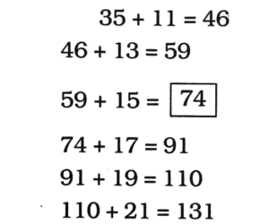 HSSC CET Exam (06.11.2022-Shift II)Total Questions: 10061. Pointing towards a girl, Ankit said, "This girl is the wife of the grandson of my mother." How is Ankit related to the girl?(1) Father(2) Uncle(3) Son(4) Father-in-law(5) Not attemptedCorrect Answer: (4) Father-in-lawSolution:Grandson of Ankit's mother means son of Ankit.The girl is wife of Ankit's son. Therefore, Ankit is father-in-law of that girl.62. Three statements are followed by three Conclusions. Take the statements to be true even if they seem to be at variance from the commonly known facts. Decide which of the given Conclusions logically follow(s) from the given statements.Statements:All rats are cats.All lions are cats.All deer are lions.Conclusions:I. All deer are cats.II. Some deer are rats.III. Some cats are deer.(1) Only II and III follow(2) Only I and III follow(3) Only II follows(4) Only I and II follow(5) Not attemptedCorrect Answer: (2) Only I and III followSolution:63. What is the value of (x) in the series?35, 46, 59, (x), 91, 110, 131(1) 64(2) 74(3) 79(4) 84(5) Not attemptedCorrect Answer: (2) 74Solution:64. Five boys are sitting in a row. Ravi is not adjacent to Suresh or Anil. Anubhav is not adjacent to Suresh. Ravi is adjacent to Mohan. Mohan is in the middle in the row. Anil is sitting at the end on the right side. Then Anubhav is sitting adjacent to whom out of the following?(1) Ravi(2) Mohan(3) Suresh(4) Anil(5) Not attemptedCorrect Answer: (1) RaviSolution:65. You are a Finance Minister of any country. There is recession in the economy of that country. What best action would you take?(1) Try to get money from international agencies.(2) Implement good financial policies to enhance the economy of the country.(3) Divert the mind of the public to other issues.(4) Try to borrow money from other countries.(5) Not attemptedCorrect Answer: (2) Implement good financial policies to enhance the economy of the country.Solution:Obviously, option (2) is the most suitable answer.66. Select the missing numbers from the given options that will complete the number series.0, 2, 6, ____, 20, 30, 42,____, 72,90(1) 18 and 56(2) 12 and 56(3) 18 and 48(4) 12 and 48(5) Not attemptedCorrect Answer: (2) 12 and 56Solution:67. Find the odd one out.(1) Lyricist - Song(2) Farmer - Plough(3) Labourer - Spade(4) Carpenter - Saw(5) Not attemptedCorrect Answer: (1) Lyricist - SongSolution:Except the word-pair 'Lyricist: Song', in the other three word-pairs 'Worker - Tool' re-lationship has been shown.Lyricist composes song.68. Select the option that is related to the third term in the same way as the second term is related to the first term.12 : 72 : : 6 : ?(1) 46(2) 28(3) 18(4) 64(5) Not attemptedCorrect Answer: (3) 18Solution:69. Select the option that is related to the third term in the same way as the second term is related to the first term.Mma : AMm : : Ppr : ?(1) RPp(2) Rpr(3) RpP(4) Prp(5) Not attemptedCorrect Answer: (1) RPpSolution:70. Select the combination of numbers so that the letters arranged accordingly will form meaningful word:(1) 4, 3, 2, 5,1,6(2) 6, 3, 1, 2, 5, 4(3) 4, 3, 1,5, 2, 6(4) 4, 3, 2, 1, 6, 5(5) Not attemptedCorrect Answer: (3) 4, 3, 1,5, 2, 6Solution:Submit Quiz« Previous12345678910Next »