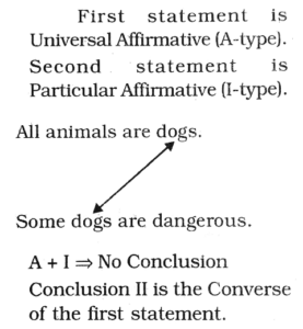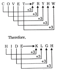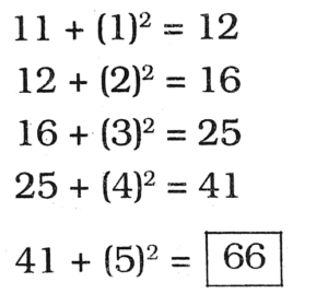 HSSC CET Group-D Exam 21.10.2023 (Shift-I)Total Questions: 9731. Five children A, B, C, D and E are standing in a row, facing North but not necessarily in the same order. 'C' is to the right of 'E' and to the left of 'A'. 'A' and 'D' have one child between them. Who is in the middle of the row?(1) E(2) C(3) B(4) A(5) Not AttemptedCorrect Answer: (4) ASolution:32. A set of English letters is given below in a jumbled order, Select the combination of numbers so that the letters arranged accordingly will form a meaningful word.(1) 3, 5, 1, 4, 2, 6(2) 2, 1, 5, 3, 6, 4(3) 2, 5, 1, 3, 6, 4(4) 4, 1, 5, 2, 3, 6(5) Not AttemptedCorrect Answer: (3) 2, 5, 1, 3, 6, 4Solution:33. If 'Q' is brother of son of R's son, then how is 'Q' related to 'R'?(1) Son(2) Uncle(3) Grandson(4) Cousin(5) Not AttemptedCorrect Answer: (3) GrandsonSolution:Q is son of R's son. Therefore, Q is grandson of R.34. If 25th of August in a year is Thursday, then how many Tuesdays will be there in that month?(1) 3(2) 5(3) 4(4) 6(5) Not AttemptedCorrect Answer: (2) 5Solution:25th August ⇒ Thursday23th August ⇒ TuesdayOther Tuesdays ⇒ 2, 9, 16, 30Total Tuesdays = 535. Two statements are given, followed by two Conclusions I and II. Assuming the state-ments to be true even if they seem to be at variance from the commonly known facts, decide which of the Conclusions logically follow/follows from the given statements.Statements:All animals are dogs.Conclusions:Some dogs are dangerous.I. All animals are dangerous.II. Some dogs are animals.(1) Only Conclusion I follows.(2) Only Conclusion II follows.(3) Both Conclusions I and II follow.(4) Neither Conclusion I nor Il follows.(5) Not AttemptedCorrect Answer: (2) Only Conclusion II follows.Solution:36. Kilometre is related to Distance in the same way as Newton is related to:(1) Acceleration(2) Density(3) Force(4) Momentum(5) Not AttemptedCorrect Answer: (3) ForceSolution:Kilometre is the unit of measurement of Distance. Similarly, Newton is the unit of measurement of Force.37. Find the next term of the series:11, 12, 16, 25, 41,_?_(1) 65(2) 66(3) 69(4) 72(5) Not AttemptedCorrect Answer: (2) 66Solution:38. Find the odd one out:(1) Ginger(2) Carrot(3) Potato(4) Tomato(5) Not AttemptedCorrect Answer: (4) TomatoSolution:Except Tomato, the other three are grown under the ground and these are either modified roots or stems Tomato is a fruit and is grown above the ground.39. If in a certain code, 'COVET is written as 'FRYHW' then how will 'HIDE' be written in the same language?(1) KLEF(2) KLGH(3) KLEI(4) KGEF(5) Not AttemptedCorrect Answer: (2) KLGHSolution:40. A man is facing North direction. He turns 135° in anti-clockwise direction, and then 90° in the clockwise direction. Which direction is he facing now?(1) North-East(2) North(3) North-West(4) West(5) Not AttemptedCorrect Answer: (3) North-WestSolution:Submit Quiz« Previous12345678910Next »