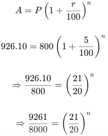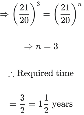 HSSC CET Group-D Exam 21.10.2023 (Shift-II)Total Questions: 10041. (0.5 × 0.5 + 0.5 ÷ 5) is equal to:(1) 0.35 (2) 0.45(3) 0.15(4) 0.25 (5) Not attemptedCorrect Answer: (1) 0.35 Solution:(0.5 × 0.5 + 0.5 ÷ 5) 42. The L.C.M. of three numbers 2 p, 5 p and 7 p is :(1) 75 p(2) 70 p³(3) 70 p(4) 65 p(5) Not attemptedCorrect Answer: (3) 70 pSolution:LCM of 2P, 5P & 7P= 2P × 5 × 7= 70P43. For which sum, the simple interest at the rate of 3 ¾ % per annum will be Rs. 210 in 2 ⅓ years ?(1) Rs. 2,800(2) Rs. 2,500(3) Rs. 1,580(4) Rs. 2,400 (5) Not attemptedCorrect Answer: (4) Rs. 2,400 Solution:= Rs. 240044. If a and b are two distinct integers, then which of the following is incorrect ?(1) a + 0 = 0 + a = a(2) a - 0 = a ≠ 0 - a(3) a + b = b + a(4) a - b = b - a(5) Not attemptedCorrect Answer: (4) a - b = b - aSolution:If a and b are two distinct integers thena - b = b - a is incorrect45. A certain number Is divided Into two parts such that 5 times the first part added to 11 times the second part makes 7 times the number. The ratio of the first part to the second part is :(1) 1 : 2(2) 2 : 3(3) 2 : 1(4) 5 : 11(5) Not attemptedCorrect Answer: (3) 2 : 1Solution:Let the number be xFirst part = kSecond part = x - kAccording to question,5k + 11 (x - k) = 7x⇒ 5k + 11x - 11k = 7x⇒ 11x - 7x = 6k⇒ 4x = 6k Required ratio = 2 : 146. Half of a certain number is equal to 65% of the second number. The ratio of the first number to the second number is(1) 13 : 8(2) 13 : 10(3) 10 : 13(4) 8 : 13(5) Not attemptedCorrect Answer: (2) 13 : 10Solution:Let first number = xSecond number = yAccording to question ⇒ x : y = 13 : 1047. The length of the longest rod that can be placed in a room of dimensions 10 m × 10 m × 5 m is :(1) 10√2(2) 5√3 m(3) 15√3 m (4) 15 m(5) Not attemptedCorrect Answer: (4) 15 mSolution:Length of longest rod that can be placed in a room 48. In how many years will a sum of Rs. 800 at 10% per annum compound interest, compounded semi-annually become Rs. 926.10 ?(1) 2⅓(2) 2½(3) 1⅓(4) 1½(5) Not attemptedCorrect Answer: (4) 1½Solution:Interest is compounded half yearly. 49. 20 litres of a mixture contains milk and water in the ratio 3 : 1. The amount of milk to be added to the mixture so as to make the ratio 4 : 1, is :(1) 5 litres(2) 6 litres(3) 7 litres(4) 4 litres(5) Not attemptedCorrect Answer: (1) 5 litresSolution:Quantity of milk = 3/4 × 20= 15 litres Quantity of water = 1/4 × 20= 5 litresAccording to question, 50. Simplification of ____ gives :(1) 41/4(2) 9/5 (3) 5/3(4) 41/12(5) Not attemptedCorrect Answer: (3) 5/3Solution:Submit Quiz« Previous12345678910Next »