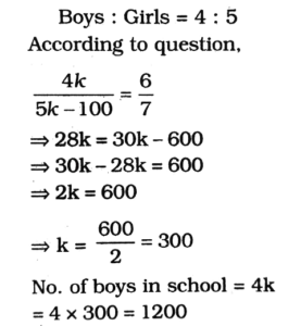 HSSC CET Group-D Exam 22.10.2023 (Shift-II)Total Questions: 9841. Harish bought an old Scooter for Rs. 4700 and spent Rs. 800 on its repairs. If he sells the Scooter for Rs. 5,800, his gain percent is:(1) 5.45%(2) 10%(3) 12%(4) 4.57%Correct Answer: (1) 5.45%Solution:42. In a school, the ratio of the number of male students to the number of female stu-dents is 4: 5. When 100 girl students leave the school. this ratio becomes 6: 7. How many students are there in school?(1) 1500(2) 1200(3) 1000(4) 1800Correct Answer: (4) 1800Solution:43. The area of a rectangle is 460 square meters. If its length is 15% more than its breadth, then which of the following is the breadth of the rectangle?(1) 26 meters(2) 34.5 meters(3) 20 meters(4) 15 meters(5) Don't want to answerCorrect Answer: (3) 20 metersSolution:44. A person can complete a work in 15 days. His father takes 20 days to complete the same work while his son can com-plete it in 25 days. If all three work together, how much time will it take to complete the work?(1) 6 full days(2) About 6.4 days(3) 7 days(4) Less than 6 days(5) Don't want to answerCorrect Answer: (2) About 6.4 daysSolution:45. The greatest 4-digit and the smallest 4-digit numbers. formed by the digits 4, 0, 3, 7 (each digil used only once) are respectively:(1) 3740, 3047(2) 7403, 3704(3) 7430, 3047(4) 4370, 4307(5) Not attemptedCorrect Answer: (3) 7430, 3047Solution:Largest 4-digit number formed by 4, 0, 3, 7 = 7430Smallest 4-digit number formed by 4, 0, 3 & 7 = 304746. The speeds of three cars are in the ratio 2:3:4. The ratio between the time taken these cars to cover the same distance is:(1) 4:3:2(2) 4:3:6(3) 6:4:3(4) 2:3:4(5) Not attemptedCorrect Answer: (3) 6:4:3Solution:47. If a sum becomes its double in 10 years, then the annual rate of simple interest is:(1) 5%(2) 10%(3) 20%(4) 8%(5) Not attemptedCorrect Answer: (2) 10%Solution:48. The average of 50 numbers is 38 It numbers 45 and 55 are excluded, then will be the average of the remaining numbers?(1) 37(2) 37.5(3) 37.52(4) 30.5(5) Not attemptedCorrect Answer: (2) 37.5Solution:49. A started a business with Rs. 63,000 and ia joined afterwarda by B with Rs. 1,08,000. After how many months did B join if the profits at the end of the year are divided equally?(1) 4(2) 5(3) 6(4) 3(5) Not attemptedCorrect Answer: (2) 5Solution:50. The L.C.M. of three different numbers is 120. Which of the following cannot be their H.C.F.?(1) 12(2) 24(3) 35(4) 8(5) Not attemptedCorrect Answer: (3) 35Solution:Submit Quiz« Previous12345678910Next »