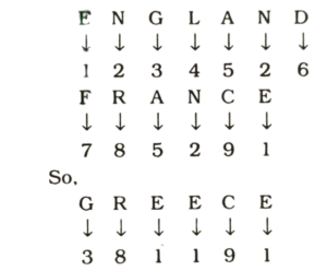 5. If ENGLAND is coded as 1234526 end FRANCE is coded as 785291 & how can GREECE be coded.