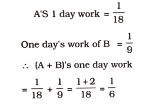 9. If A completes a work in 18 days & B takes half time than A to complete the same work then if they work together, what part of work they can do in one day?