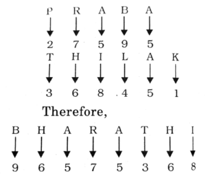 HSSC CLERK EXAM (21.09.2019)Total Questions: 1001. Four pairs of words are given, out of which the words in three pairs bear a certain common relationship. Choose the pair in which the words are differently related.(1) Daring : Timid(2) Beautiful : Pretty(3) Clear : Vague(4) Youth : AdultCorrect Answer: (2) Beautiful : PrettySolution:Except the word-pair "Beautiful-Pretty", in all other word-pairs one word is antonym of the second word. Beautiful and Pretty are synonymous to each other.2. Choose the odd one.(1) ABpQ(2) npRS(3) PQST(4) EFIJCorrect Answer: (2) npRSSolution:3. Complete the given series:(1) 312(2) 325(3) 515(4) 613Correct Answer: (1) 312Solution:4. In the given letter series, some of the letters are missing which are given in that order as one of the alternatives below it. Choose the correct alternative._ _babbba_a_ _(1) ababb(2) baaab(3) bbaba(4) babbbCorrect Answer: (4) babbbSolution:5. If the letters in PRABA are coded as 27595, and THIAK are coded as 368451, how can BHARATHI be coded?(1) 37536689(2)57686535(3) 96575368(4) 96855368Correct Answer: (3) 96575368Solution:6. Evaluate : √6084(1) 75(2) 77(3) 78(4) 68Correct Answer: (3) 78Solution:7. If Rs. 782 is divided into three parts, proportional 1/2; 2/3; to 3/4, find the first part.(1) 190(2) 204(3) 220(4) None of theseCorrect Answer: (2) 204Solution:8. Ratio between the ages of Akhil and Deepak is 4 : 3, after 6 years Akhil's age will be 26 years. What is Deepak's present age?(1) 14(2) 15(3) 20(4 22Correct Answer: (2) 15Solution:9. A does a work in 10 days and B does the same work in 15 days. In how many days will they together do the same work?(1) 5 days(2) 6 days(3) 7 days(4) 8 daysCorrect Answer: (2) 6 daysSolution:10. A person crosses a 600 metre long street in 5 minutes. What is the speed in km/hr?(1) 6.2 km/hr(2) 7.2 km/hr(3) 8.2 km/hr(4) 9.2 km/hrCorrect Answer: (2) 7.2 km/hrSolution:Person's speed = Distance/TimeSubmit Quiz12345678910Next »