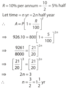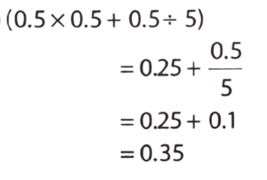 HSSC Group D-21/10/2023 (Evening Shift)Total Questions: 10041. (0.5 × 0.5 + 0.5 ÷ 5) is equal to :(a) 0.35(b) 0.45(c) 0.15(d) 0.25(e) UnattemptedCorrect Answer: (a) 0.35Solution:42. The L. C. M. of three numbers 2p, 5p and 7p is :(a) 75p(b) 70p³(c) 70p(d) 65p(e) UnattemptedCorrect Answer: (b) 70p³Solution:LCM of three numbers 2p, 5p and 7p= 2 x 5 x 7 x p= 70p43. For which sum, the simple interest at the rate of 3 ¾ % per annum will be ₹ 210 in 2 ⅓ years?(a) ₹ 2800(b) ₹ 2500(c) ₹ 1580(d) ₹ 2400(e) UnattemptedCorrect Answer: (d) ₹ 2400Solution:Given, SI = overline < 210 R = 3 ¾ % =2 ⅓ %44. If a and b are two distinct integers, then which of the following is incorrect?(a) a + 0 = 0 + a = a(b) a – 0 = a + 0(c) a + b = b + a(d) a – b = b – a(e) UnattemptedCorrect Answer: (d) a – b = b – aSolution:Let a = 2 , b = 3From option (a),2+0=0+2=2→ Correct From option (b),2-020-2→ Correct From option (c),2+3=3+25=5 → Correct From option (d),2-3-3-2-1=1 → Incorrect45. A certain number is divided into two parts such that 5 times the first part added to 11 times the second part makes 7 times the number. The ratio of the first part to the second part is :(a) 1 : 2(b) 2 : 3(c) 2 : 1(d) 5 : 11(e) UnattemptedCorrect Answer: (a) 1 : 2Solution:Let the first and second part be x and y respectively.According to the question,5x + 11y = 7(x + y)⇒ 5x + 11y = 7x + 7y⇒ 7x - 5x = 11y - 7y⇒ 2x = 4y⇒ x/y = 4/2 = 2/1x : y = 2/:146. Half of a certain number is equal to 65% of the second number. The ratio of the first number to the second number is :(a) 13 : 8(b) 13 : 10(c) 10 : 13(d) 8 : 13(e) UnattemptedCorrect Answer: (b) 13 : 10Solution:Let the first and second number be x and y, respectively.According to the question,47. The length of the longest rod that can be placed in a room of dimensions 10 m × 10 m × 5 m is :(a) 10√2m(b) 5√3m(c) 15√3m(d) 5 m(e) UnattemptedCorrect Answer: (d) 5 mSolution:The length of the longest rod that can be placed in a room48. In how many years will a sum ₹ 800 at 10% per annum compound interest, compounded semi-annually become ₹ 926.10?(a) 2 years(b) 1 ½ years(c) 1 ¾ years(d) 1 ¼ years(e) UnattemptedCorrect Answer: (d) 1 ¼ yearsSolution:Given, P = ₹ 800 A =₹ 926.1049. 20 litres of a mixture contains milk and water in the ratio 3 : 1. How many litres of milk be added to the mixture so as to make the ratio 4 : 1 is :(a) 5 litres(b) 6 litres(c) 7 litres(d) 4 litres(e) UnattemptedCorrect Answer: (a) 5 litresSolution:In 20 L of mixture,3 Quantity of milk = 20 x = = 15 L Quantity of water=20-15=5L Let the amount of milk to be added = x L50. Simplification of 0.2 × 0.2 + 0.01 ÷ 0.1 × 0.1 + 0.02 gives :(a) 41⁄4(b) 9⁄5(c) 5⁄3(d) 41⁄12(e) UnattemptedCorrect Answer: (c) 5⁄3Solution:Submit Quiz« Previous12345678910Next »