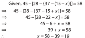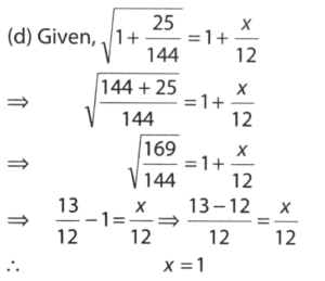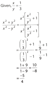 HSSC Group D-21/10/2023 (Morning Shift)Total Questions: 10041. On selling 17 balls for ₹ 720, there is a loss equal to the cost price of 5 balls. The cost price of one ball in ₹ :(a) ₹ 45(b) ₹ 50(c) ₹ 55(d) ₹ 60(e) UnattemptedCorrect Answer: (d) ₹ 60Solution:42. If 45 – [28 – {37 – (15 – x)}] = 58, then the value of x is :(a) –29(b) –19(c) 19(d) 29(e) UnattemptedCorrect Answer: (c) 19Solution:43. A and B started a business by investing ₹ 22,500 and ₹ 35,000 respectively. Out of a total profit of ₹ 27,600, B's share is :(a) ₹ 10,800(b) ₹ 14,400(c) ₹ 16,800(d) ₹ 19,200(e) UnattemptedCorrect Answer: (c) ₹ 16,800Solution:44. If x ÷ y = 1 ÷ 3 , then the value of x² + y² ÷ x² - y² – y is :(a -10 ÷ 9(b) 5 ÷ 4(c) -5 ÷ 4(d) -5 ÷ 3(e) UnattemptedCorrect Answer: (c) -5 ÷ 4Solution:45. The greatest number which divides the greatest 3-digit number and the greatest 4-digit number exactly is(a) 3(b) 7(c) 8(d) 9(e) UnattemptedCorrect Answer: (d) 9Solution:Greatest 3-digit number = 999Greatest 4-digit number = 9999Greatest number which divide both numbers = HCF of 999 and 9999= 946. The HCF of two numbers is 28 and their LCM is 336. If one number is 112, the other number will be:(a) 34(b) 64(c) 84(d) 92(e) UnattemptedCorrect Answer: (c) 84Solution:47. The radius of a cylinder is 5 centimeters more than its height. If the curved surface area of a cylinder is 792 cm², then its volume (in cm³) will be:(a) 5712(b) 5244(c) 5544(d) 5306(e) UnattemptedCorrect Answer: (c) 5544Solution:48. A truck covers a distance of 550 meters in 1 minute while a bus covers 33 km over the distance in 45 minutes. The ratio of the speed of the truck to the speed of the bus is:(a) 3:4(b) 4:3(c) 5:4(d) 5:3(e) UnattemptedCorrect Answer: (a) 3:4Solution:49. Two numbers are in the ratio 2:3. If their sum is 125, then the numbers are:(c) 50, 75(a) 20, 30(b) 32, 78(d) 24, 36(e) UnattemptedCorrect Answer: (c) 50, 75Solution:50. If √1 + 25/144 = 1 + X/12, then the value of x is:(a) 1(b) 5(c) 13(d) 17(e) UnattemptedCorrect Answer: (a) 1Solution:Submit Quiz« Previous12345678910Next »