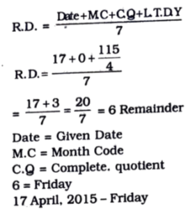 HSSC HARYANA POLICE (FEMALE) EXAMTotal Questions: 9861. In the given question one is different from other three, choose that option.(1) HLP(2) JNR(3) ΕΙΝ(4) CGKCorrect Answer: (3) ΕΙΝSolution:62. In the given question one is different from other three choose that option.(1) May(2) June(3) July(4) AugustCorrect Answer: (2) JuneSolution:May July August have 31 days while June has 30 days63. Pointing to a picture, Manish told that she is the daughter of the daughter of my uncle's father, what is the relationship of woman in the picture with Manish?(1) Sister in law(2) Mother(3) Sister(4) AuntCorrect Answer: (3) SisterSolution:The girl in the picture is sister of manish64. Which day was on 17 April 2015(1) Tuesday(2) Friday(3) Saturday(4) MondayCorrect Answer: (2) FridaySolution:65. Mr and Mrs Verma have two Children, Asha and Shashi is married to Radha who is the daughter of Mrs. Mahajan. Suresh, who is the son of Mrs. Mahajan, marries Rita. Sonu and Rocky are children of Suresh and Rita, Uma and Shudha are daughter of Shashi and Radha.What is the Surname of Sonu?(1) Mahajan(2) Verma(3) Shashi(4) None of theseCorrect Answer: (1) MahajanSolution:Mahajan66. Mr. and Mrs. Verma have two Children, Asha and Shashi. Shashi is married to Radha who is the daughter of Mrs. Mahajan. Suresh, who is the son of Mrs. Mahajan, marries Rita. Sonu and Rocky are children of Suresh and Rita, Uma and Shudha are daughter of Shashi and Radha.What is the relationship between Shudha and Suresh?(1) Brother(2) Uncle(3) Maternal uncle(4) NephewCorrect Answer: (3) Maternal uncleSolution:Suresh is Sudha's uncle67. Mr. and Mrs. Verma have two Children, Asha and Shashi. Shashi is married to Radha who is the daughter of Mrs. Mahajan. Suresh, who is the son of Mrs. Mahajan, marries Rita. Sonu and Rocky are children of Suresh and Rita, Uma and Shudha are daughter of Shashi and Radha.What is the relation between Sudha and Asha?(1) Sister(2) Niece(3) Aunty(4) DaughterCorrect Answer: (2) NieceSolution:Asha's nephew is Sudha68. In certain code, the 'FAVOUR' is written as 'EBUPTS', how will the DAGGER' be written in the same code?(1) EBHHFS(2) CBFHDS(3) CBFFDS4) EBFHDSCorrect Answer: (2) CBFHDSSolution:69. Find the conclusion following the 2 statements given in each question followed by conclusion I and II considering that the statements are true.Statement:All pants are skirts(3) No shirt is a skirtConclusion:(I) Same skirts are pant (II) All shirts are pant(1) Only conclusion I follows(2) Only conclusion II follows(3) Either I and II follows(4) Neither I and II followsCorrect Answer: (1) Only conclusion I followsSolution:70. Find the conclusion following the 2 statements given in each question followed by conclusion I and II considering that the statements are true.Statement:(I) All ships are tires(II) All tires are engines.Conclusion:(I) No engines are ships.(II) No tires are ship(1) Only conclusion I follows(2) Only conclusion II follows(3) Either I and II follows(4) Neither I and II followsCorrect Answer: (4) Neither I and II followsSolution:Submit Quiz« Previous12345678910Next »