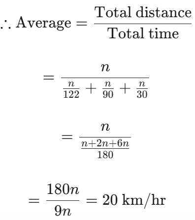 HSSC PGT ENGLISH (MEWAT) EXAMTotal Questions: 8041. The Average of 11 results is 50. If the average of first 6 result is 49 & last 6 is 52 then calculate the 6th result.(1) 50(2) 52(3) 56(4) 60Correct Answer: (3) 56Solution:GivenAverage of 11 results = 50∴ 11 × 50 = 550Average of first 6 results = 49∴ 6 × 49 = 294 ........(i)Average of last 6 result = 52∴ 6 × 52 = 312 ........(ii)Adding eq (1) & (2)294 + 312 = 606∴ 6th result = 606 - 550= 5642. If a person travels 1/3 rd of his journey by rail with the speed of 60 km/hr, Again 1/3 rd by Bus within 30 km/hr and rest by cycle at the speed of 10 km/hr. Find out the average speed of the person during the whole journey?(1) 30 km/hr(2) 33 km/hr(3) 120 km/hr(4) 50 km/hrCorrect Answer: (3) 120 km/hrSolution:Let total distance = n 43. If the price of Banana is decreased up to 40% then a person can get 64 Bananas at Rs. 40 then calculate the decrease price of per dozen ?(1) 3 (2) 5(3) 8(4) 9Correct Answer: (1) 3 Solution:Reduced price of 64 Banana ∴ Reduced price of 4 Banana = 1 ∴ Reduced price of 12 Banana = 344. If N & P both are odd numbers then which of following will be an even number ?(1) n + p + 1(2) np(3) 2n + p(4) n + PCorrect Answer: (4) n + PSolution:Sum of any two odd numbers would be even numbern = 3, p = 5, 3 + 5 = 8(even number)45. Calulate the sum of 40ᵗʰ term in a series 3, 7, 11, 15 ___ 40ᵗʰ(1) 3442(2) 3443(3) 3242(4) 3240Correct Answer: (4) 3240Solution:3, 7, 11, 15 …… 40 = a = 3, difference d = 4 46. Due to which force surface of a liquid behaves like a sheet & tends to compress in the least possible area(1) Adhesive force(2) Friction force(3) Centrifugal force (4) Fussion forceCorrect Answer: (4) Fussion forceSolution:Adhesive force is the force between the molecules of two same matters. The value of Adhesive force in water is higher.47. Which law states that the pressured liquid exerts force equally in all directions.(1) Law of Boyal Pascol(2) Pascal Law(3) Archemdis Principle(4) None of theseCorrect Answer: (2) Pascal LawSolution:Pascal law states that the pressured liquid exerts force equally in all directions.48. A electric bell is placed inside a bell jar which is connected to a vaccum pump, when the Jar becomes completely empty, what will happen?(1) No sound can be heart(2) Magnitude of sound will remain un changed(3) Magnitude of sound will increase(4) Magnitude of sound will decreaseCorrect Answer: (1) No sound can be heartSolution:No sound can be heard in vaccum.49. Nucleotides found in DNA(1) Nitrogen base + Pantose sugar(2) Nitrogen base + Pentose sugar + Phosphoric Acid(3) Only Nitrogen base(4) Pantose Sugar + Phosphoric AcidCorrect Answer: (1) Nitrogen base + Pantose sugarSolution:Nucleotides found in DNA is Nitrogen base+ pantose sugar. DNA is a carrier of genetic character.50. Match list-I with list-IIList-IList-II(a) Rosalind Franklin(i) Mutation(b) Hugo-de-Vries(ii) Chromosome(c) W. Waldeyer(iii) Ribose sugar(d) Levin(iv) DNACode : (a)(b)(c)(d)(1)(i)(ii)(iv)(iii)(2)(iv)(i)(iii)(ii)(3)(iv)(i)(ii)(iii)(4)(iii)(ii)(i)(iv) (1)(2)(3)(4)Correct Answer: (3)Solution:DNA- Rosalind franklinMutation: Hugo-de-VriesChromosome : W woldeyerRibose Sugar : LevinSubmit Quiz« Previous12345678Next »
