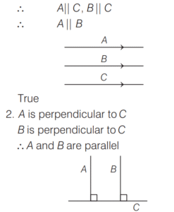 2. If A is perpendicular to C and B is perpendicular to C; then A and B are parallel.