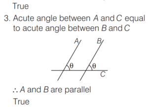 3. If the acute angle between A and C is equal to the acute angle between B and C; then A and B are parallel.