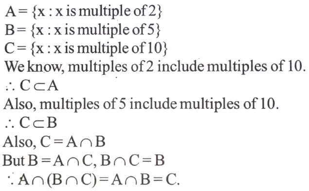 7. If A = {x : x is a multiple of 2}, B = {x : x is a multiple of 5} and C = {x : x is a multiple of 10}, then A ∩ (B ∩ C) is equal to?