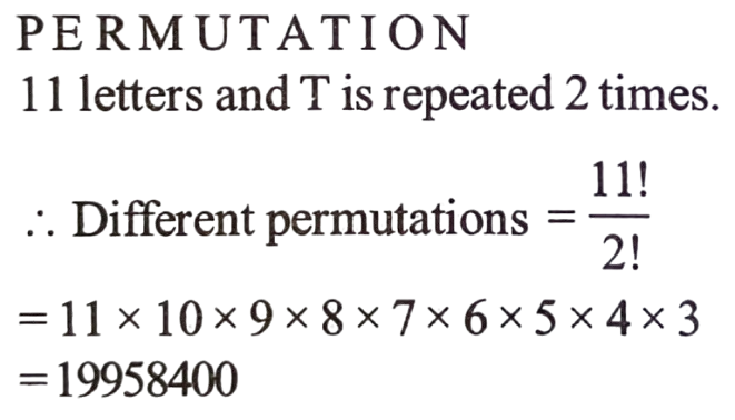 10. How many different permutation can be made out of the letters of the word ‘PERMUTATION’?