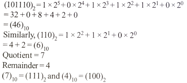 2. The remainder and the quotient of the binary division (101110)₂ ÷ (110)₂ are respectively: