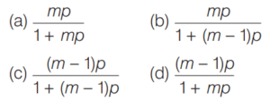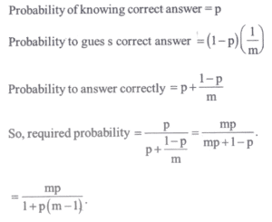 Mathematics NDA/NA SOLVED PAPER 2017 (II) (101 to 120)Total Questions: 2011. What is the probability that at least two persons out of a group of three persons were born in the same month (disregard year)?(a) 33/144(b) 17/72(c) 1/144(d) 2/9Correct Answer: (b) 17/72Solution:12. Simplify the question?(a) Y = 3.2X + 58(b) X = 3.2Y + 58(c) X = −8 + 0.2Y(d) Y = −8 + 0.2XCorrect Answer: (c) X = −8 + 0.2YSolution:13. Simplify the question?(a) 1/12(b) 3/4(c) 1/15(d) 1/9Correct Answer: (a) 1/12Solution:14. The following table gives the monthly expenditure of two families :In construction a pie diagram to theabove data, the radii of the circles are to be chosen by which one of the following ratios?(a) 1 : 1(b) 10 : 9(c) 100 : 91(d) 5 : 4Correct Answer: (b) 10 : 9Solution:15. If a variable takes values 0, 1, 2, 3,..….,n with frequencies 1, C(n, 1), C(n, 2), C(n, 3),...........,C(n, n) respectively, then the arithmetic mean is:(a) 2n(b) n + 1(c) n(d) n/2Correct Answer: (d) n/2Solution:16. In a multiple-choice test, an examinee either knows the correct answer with probability p, or guesses with probability 1 - p. The probability of answering a question correctly is 1/m, if he or she merely guesses. If the examinee answers a question correctly, the probability that he or she really knows the answer is:(a)(b)(c)(d)Correct Answer: (b)Solution:17. If x₁ and x₂ are positive quantities, then the condition for the difference between the arithmetic mean and the geometric mean to be greater than 1 is:(a) x₁ + x₂ > 2√(x₁x₂)(b) √x₁ + √x₂ > √2(c) |√x₁ − √x₂| > √2(d) x₁ + x₂ < 2(√(x₁x₂) + 1)Correct Answer: (c) |√x₁ − √x₂| > √2Solution:18. Consider the following statements :1. Variance is unaffected by change of origin and change of scale. 2. Coefficient of variance is independent of the unit of observations. Which of the statements given above is/are correct?(a) 1 only(b) 2 only(c) Both 1 and 2(d) Neither 1 nor 2Correct Answer: (b) 2 onlySolution:Only statement 2 is correct19. Five sticks of length 1, 3, 5, 7 and 9 feet are given. Three of these sticks are selected at random. What is the probability that the selected sticks can form a triangle?(a) 0.5(b) 0.4(c) 0.3(d) 0Correct Answer: (c) 0.3Solution:20. The coefficient of correlation when coefficients of regression are 0.2 and 1.8 is:(a) 0.36(b) 0.2(c) 0.6(d) 0.9Correct Answer: (c) 0.6Solution:Submit Quiz« Previous12