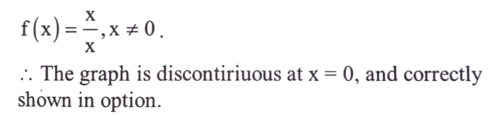 Mathematics NDA/NA SOLVED PAPER 2017 (II) (51 to 100)Total Questions: 5031. Find the answer of given equation?(a) 3 and 2(b) 2 and 2(c) 2 and 3(d) 1 and 3Correct Answer: (b) 2 and 2Solution:32. Find the answer of given equation?(a)(b)(c)(d)Correct Answer: (a)Solution:33. The set of all points, where the function f(x) = √1 - e⁻ˣ² is differentiable, is:(a) (0, ∞)(b) (−∞, ∞)(c) (−∞, 0) ∪ (0, ∞)(d) (−1, ∞)Correct Answer: (c) (−∞, 0) ∪ (0, ∞)Solution:34. Match List-I with List-II and select the correct answer using the code given below the lists :(a)(b)(c)(d)Correct Answer: (b)Solution:35. If f(x) = x(√x − √(x + 1), then f(x) is:(a) continuous but not differentiable at x = 0(b) differentiable at x = 0(c) not continuous at x = 0(d) None of the aboveCorrect Answer: (b) differentiable at x = 0Solution:36. Which one of the following graph represents the function f(x) = x/x, x ≠ 0?(a)(b)(c)(d)Correct Answer: (c)Solution:37. Find the answer of given equation?(a) 251(b) 250(c) 1(d) 0Correct Answer: (a) 251Solution:38. ∫(ln x)⁻¹ dx − ∫(ln x)⁻² dx is equal to?(a) x(ln x)⁻¹ + C(b) x(ln x)⁻² + C(c) x(ln x) + C(d) x(ln x)² + CCorrect Answer: (a) x(ln x)⁻¹ + CSolution:39. A cylindrical jar without a lid has to be constructed using a given surface area of a metal sheet. If the capacity of the jar is to be maximum, then the diameter of the jar must be k times the height of the jar. The value ofk is:(a) 1(b) 2(c) 3(d) 4Correct Answer: (b) 2Solution:40. Find the answer of given equation?(a) π/4(b) π/2(c) π/(2√2)(d) π/√2Correct Answer: (d) π/√2Solution:Submit Quiz« Previous12345Next »