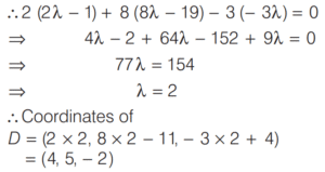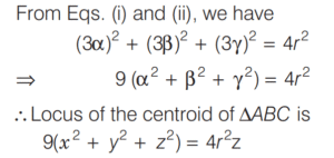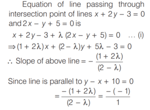 Mathematics NDA/NA SOLVED PAPER 2018 (I) (51 to 100)Total Questions: 501. What is the distance between the points which divide the line segment joining (4, 3) and (5, 7) internally and externally in the ratio 2 : 3?(a)(b)(c)(d)Correct Answer: (a)Solution:2. What is the angle between the straight lines (m²−mn)y = (mn + n²) x + n³ and (mn+m²)y = (mn−n²)x + m³, where m > n?(a)(b)(c)(d)Correct Answer: (c)Solution:3. What is the equation of the straight line cutting-off an intercept 2 from the negative direction of Y - axis and inclined at 30° with the positive direction of X -axis ?(a) x -2√3y − 3√2 = 0(b) x + 2√3y − 3√2 = 0(c) x + √3y - 2√3 = 0(d) x - √3y − 2√3 = 0Correct Answer: (d) x - √3y − 2√3 = 0Solution:4. What is the equation of the line passing through the point of intersection of the lines x + 2y - 3 = 0 and 2x - y + 5 = 0 and parrallel to the line y - x + 10 = 0?(a) 7x - 7y + 18 = 0(b) 5x - 7y + 18 = 0(c) 5x - 5y + 18 = 0(d) x - y + 5 = 0Correct Answer: (c) 5x - 5y + 18 = 0Solution:5. Consider the following statements:(a) I, II and III(b) I only(c) I and II(d) II onlyCorrect Answer: (c) I and IISolution:6. What is the equation of the ellipse whose vertices are ( ± 5 , 0 ) and foci are at ( ± 4 , 0)?(a)(b)(c)(d)Correct Answer: (a)Solution:7. What is the equation of the straight line passing through the point (2, 3) and making an intercept on the positive Y - axis equal to twice its intercept on the positive X -axis?(a) 2x + y = 5(b) 2x + y = 7(c) x + 2y = 7(d) 2x - y = 1Correct Answer: (b) 2x + y = 7Solution:8. Let the coordinates of the points A B C be (1, 8, 4), (0, -11, 4) and (2, -3, 1) respectively. What are the coordinates of the point D which is the foot of the perpendicular from A on BC?(a) (3, 4, -2)(b) (4, -2, 5)(c) (4, 5, -2)(d) (2, 4, 5)Correct Answer: (c) (4, 5, -2)Solution:9. What is the equation of the plane passing through the points (-2, 6, -6), (-3, 10, -9) and (-5, 0, -6)?(a) 2x - y - 2z = 2(b) 2x + y + 3z = 3(c) x + y + z = 6(d) x - y - z = 3Correct Answer: (a) 2x - y - 2z = 2Solution:10. A sphere of constant radius r through the origin intersects the coordinate axes in A, B and C. What is the locus of the centroid of the ∆ ABC?(a) x² + y² + z² = r²(b) x² + y² + z² = 4r²(c) 9(x² + y² + z²) = 4r²(d) 3(x² + y² + z²) = 2r²Correct Answer: (c) 9(x² + y² + z²) = 4r²Solution:Submit Quiz12345Next »