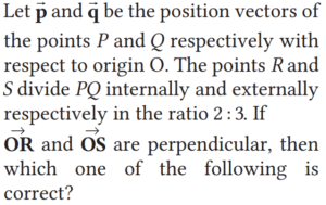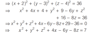 Mathematics NDA/NA SOLVED PAPER 2018 (I) (51 to 100)Total Questions: 5011. The coordinates of the vertices P, Q and R of a triangle PQR are (1 ,−1, 1) , (3, − 2, 2) and (0, 2, 6) respectively. If ∠RQP = 9, then what is ∠PRQ equal to?(a) 30° + θ(b) 45° − θ(c) 60° − θ(d) 90° − θCorrect Answer: (d) 90° − θSolution:12. The perpendiculars that fall from any point of the straight line 2x + 11y = 5 upon the two straight lines 24x + 7y = 20 and 4x - 3y = 2 are:(a) 12 and 4 respectively(b) 11 and 5 respectively(c) Equal to each other(d) Not equal to each otherCorrect Answer: (c) Equal to each otherSolution:13. The equation of the line, when the portion of it intercepted between the axes is divided by the point (2, 3) in the ratio of 3 : 2, is:(a) Either x + y = 4 or 9x + y = 12(b) Either x + y = 5 or 4x + 9y = 30(c) Either x + y = 4 or x + 9y = 12(d) Either x + y = 5 or 9x + 4y = 30Correct Answer: (d) Either x + y = 5 or 9x + 4y = 30Solution:14. What is the distance between the straight lines 3x + 4y = 9 and 6x + 8y = 15?(a) 3/2(b) 3/10(c) 6(d) 5Correct Answer: (b) 3/10Solution:15. What is the equation of the sphere whose centre is at (-2, 3, 4) and radius is 6 units?(a) x² + y² + z² + 4x – 6y – 8z = 7(b) x² + y² + z² + 6x – 4y – 8z = 7(c) x² + y² + z² + 4x – 6y – 8z = 4(d) x² + y² + z² + 4x + 6y + 8z = 4Correct Answer: (a) x² + y² + z² + 4x – 6y – 8z = 7Solution:16. Find the answer of given equation?(a) 30°(b) 45°(c) 60°(d) 90°Correct Answer: (a) 30°Solution:17. Find the answer of given question?(a) 9p² = 4q²(b) 4p² = 9q²(c) 9p = 4q(d) 4p = 9qCorrect Answer: (a) 9p² = 4q²Solution:18. Find the answer of given equation?(a) –3î + 11ĵ + 9k̂(b) 3î + 2ĵ + 9k̂(c) 3î + 4ĵ + 9k̂(d) î + ĵ + k̂Correct Answer: (a) –3î + 11ĵ + 9k̂Solution:19. Simplify the question?(a) 2(b) 3(c) 4(d) 6Correct Answer: (d) 6Solution:20. Simplify the equation?(a)(b)(c)(d)Correct Answer: (b)Solution:Submit Quiz« Previous12345Next »