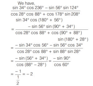 Mathematics (NDA/NA SOLVED PAPER 2019 (I) (01 to 50)Total Questions: 5031. What is the value of:(a) −2(b) −1(c) 2(d) 1Correct Answer: (a) −2Solution:32. tan54° can be expressed as:(a)(b)(c)(d)Correct Answer: (c)Solution:33. Question:- (33 to 35) : Read the given information carefully and answer the given questions:What is the value of θ?(a) π/2(b) π/3(c) π/4(d) π/6Correct Answer: (c) π/4Solution:34. What is the value of A?(a) 4(b) 3(c) 2(d) 1Correct Answer: (b) 3Solution:35. What is the value of B?(a) −1(b) 0(c) 1(d) 2Correct Answer: (b) 0Solution:B = − 136. Question:- (36 to 37) Read the given information carefully and answer the given questions:What is cos( ) α − β equal to? (a)(b)(c)(d)Correct Answer: (a)Solution:37. What is sin²(α − β) + 2ab cos (α − β) equal to?(a) a² + b²(b) a² - b²(c) b² - a²(d) -(a² + b²)Correct Answer: (a) a² + b²Solution:38. If sin α + cos α = p, then what is cos²(2α) equal to?(a) p²(b) p² - 1(c) p²(2 - p²)(d) p² + 1Correct Answer: (c) p²(2 - p²)Solution:39. Simplify the equation?(a) π/4(b) π/2(c) π(d) 0Correct Answer: (d) 0Solution:40. Simplify the equation?(a)(b)(c)(d)Correct Answer: (b)Solution:Submit Quiz« Previous12345Next »