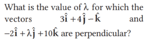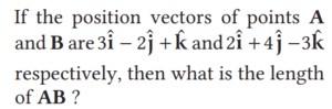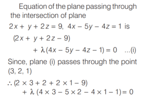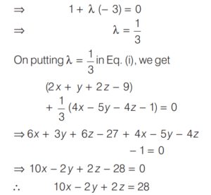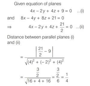 Mathematics (NDA/NA SOLVED PAPER 2019 (I) (51 to 100)Total Questions: 5011. The centroid of the triangle with vertices A(2, -3, 3), B(5, -3, -4) and C(2, -3, -2) is the point:(a) (-3, 3, -1)(b) (3, -3, -1)(c) (3, 1, -3)(d) (-3, -1, -3)Correct Answer: (b) (3, -3, -1)Solution:12. What is the radius of the sphere x² + y² + z² - 6x + 8y - 10z + 1 = 0?(a) 5(b) 2(c) 7(d) 3Correct Answer: (c) 7Solution:13. The equation of the plane passing through the intersection of the planes 2x + y + 2z = 9, 4x - 5y - 4z = 1 and the point (3, 2, 1) is:(a) 10x - 2y + 2z = 28(b) 10x + 2y + 2z = 28(c) 10x + 2y - 2z = 28(d) 10x - 2y - 2z = 24Correct Answer: (a) 10x - 2y + 2z = 28Solution:14. The distance between the parallel planes 4x - 2y + 4z + 9 = 0 and 8x - 4y + 8z + 21 = 0?(a) 1/4(b) 1/2(c) 3/2(d) 7/4Correct Answer: (a) 1/4Solution:15. What are the direction cosines of Z-axis?(a)(b)(c)(d)Correct Answer: (d)Solution:Direction cosines of Z-axis are <cos 90°, cos 90°, cos 0°> <0, 0, 1>16. Find the answer of given question?(a) 106(b) −106(c) 53(d) −53Correct Answer: (b) −106Solution:17. Find the answer of given question?(a) √14(b) √29(c) √43(d) √53Correct Answer: (d) √53Solution:18. If in a right angled triangle ABC, hypotenuse AC = p, then what is AB ⋅ AC + BC ⋅ BA + CA ⋅ CB equal to?(a) p²(b) 2p²(c) p²/2(d) pCorrect Answer: (a) p²Solution:19. solve the following equation?(a) 1/√26(b) 5/√26(c) 5/26(d) 1/26Correct Answer: (b) 5/√26Solution:20. Find the answer of given equation?(a) 1(b) 2(c) 3(d) 4Correct Answer: (d) 4Solution:Submit Quiz« Previous12345Next »