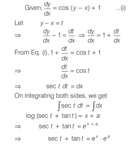 Mathematics (NDA/NA SOLVED PAPER 2019 (I) (51 to 100)Total Questions: 5031. Find the answer of given equation?(a)(b)(c)(d)Correct Answer: (a)Solution:32. Simplify the equation?(a) 0(b) 2 (√2 -1)(c) 2√2(d) 2(√2 + 1)Correct Answer: (b) 2 (√2 -1)Solution:33. If y = a cos 2x + b sin2x, then:(a)(b)(c)(d)Correct Answer: (d)Solution:34. A given quantity of metal is to be cast into a half cylinder (i.e. with a rectangular base and semicircular ends). If the total surface area is to be minimum, then the ratio of the height of the half cylinder to the diameter of the semicircular ends is:(a) π : (π + 2)(b) (π + 2) : π(c) 1 : 1(d) None of theseCorrect Answer: (a) π : (π + 2)Solution:35. Find the answer of given question?(a) e + 1(b) e − 1(c) e + 2(d) eCorrect Answer: (b) e − 1Solution:36. Find the answer of given equation?(a)(b)(c)(d)Correct Answer: (d)Solution:37. Simplify the equation?(a)(b)(c)(d)Correct Answer: (a)Solution:38. The minimum distance from the point (4, 2) to y² = 8x is equal to?(a) √2(b) 2√2(c) 2(d) 3√2Correct Answer: (b) 2√2Solution:39. The differential equation of the system of circles touching the Y - axis at the origin is:(a)(b)(c)(d)Correct Answer: (c)Solution:40. Simplify the question?(a) Only 1(b) Only 2(c) Both 1 and 2(d) Neither 1 nor 2Correct Answer: (c) Both 1 and 2Solution:The order of highest order derivative occuring in the differential equation is 2 and its degree is 1.Submit Quiz« Previous12345Next »