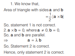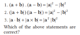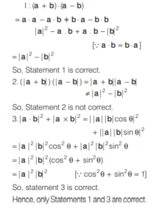 Mathematics NDA/NA SOLVED PAPER 2019 (II) (01 to 50)Total Questions: 5041. Simplify the question?(a) 5(b) 10(c) 15(d) 20Correct Answer: (b) 10Solution:42. Consider the following statements:1. cos θ + sec θ can never be equal to 1.5. 2. tan θ + cot θ can never be less than 2. Which of the above statements is/are correct?(a) Only 1(b) Only 2(c) Both 1 and 2(d) Neither 1 nor 2Correct Answer: (b) Only 2Solution:43. A ladder 9m long reaches a point 9m below the top of a vertical flagstaff. From the foot of the ladder, the elevation of the flagstaff is 60°. What is the height of the flagstaff?(a) 9 m(b) 10 5. m(c) 13 5. m(d) 15 mCorrect Answer: (c) 13 5. mSolution:44. What is the length of the chord of a unit circle which subtends an angle θ at the centre?(a)(b)(c)(d)Correct Answer: (c)Solution:45. Find the answer of given equation?(a) 2/3(b) 3/4(c) 3/8(d) 1/9Correct Answer: (b) 3/4Solution:46. Find the answer of given question?(a) √6/9(b) 19/9(c) 9/19(d) √6/19Correct Answer: (b) 19/9Solution:47. If the magnitude of the sum of two non-zero vectors is equal to the magnitude of their difference, then which one of the following is correct?(a) The vectors are parallel(b) The vectors are perpendicular(c) The vectors are anti-parallel(d) The vectors must be unit vectorsCorrect Answer: (b) The vectors are perpendicularSolution:48. Consider the following equations for two vectors a and b.?(a) 1, 2 and 3(b) Only 1 and 2(c) Only 1 and 3(d) Only 2 and 3Correct Answer: (c) Only 1 and 3Solution:49. Consider the following statements:1. The magnitude of a × b is same as the area of a triangle with sides a and b 2. If a × b = 0, where a ≠ b = 0, b ≠ 0, then a = λ b. Which of the above statements is/are correct?(a) Only 1(b) Only 2(c) Both 1 and 2(d) Neither 1 nor 2Correct Answer: (b) Only 2Solution:50. If a and b are unit vectors and θ is the angle between them, then what is sin²(θ/2) equal to?(a)(b)(c)(d)Correct Answer: (b)Solution:Submit Quiz« Previous12345