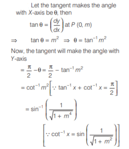 Mathematics NDA/NA SOLVED PAPER 2019 (II) (51 to 100)Total Questions: 5021. What is the area of the region bounded by |x| < 5, y = 0 and y = 8?(a) 40 sq units(b) 80 sq units(c) 120 sq units(d) 160 sq unitsCorrect Answer: (b) 80 sq unitsSolution:22. Find the answer of given equation?(a) Only 1(b) Only 2(c) Both 1 and 2(d) Neither 1 nor 2Correct Answer: (d) Neither 1 nor 2Solution:23. Find the answer of given equation?(a) 1/4(b) 1/3(c) 1/2(d) 1Correct Answer: (b) 1/3Solution:24. What is the degree of the differential equation:(a) 1(b) 2(c) 3(d) 4Correct Answer: (a) 1Solution:25. Which one of the following is the second degree polynomial function f(x) where, f(0) = 5, f(−1) = 10 and f (1) = 6?(a) 5x² - 2x + 5(b) 3x² - 2x - 5(c) 3x² - 2x + 5(d) 3x² - 10x + 5Correct Answer: (c) 3x² - 2x + 5Solution:26. What is the slope of the curve at the point of intersection P?Question:- (76 to 78) Read the following information and answer the three items that follow . A curve y = meᵐˣ where m > 0 intersects Y-axis at a point P.(a) m(b) m²(c) 2m(d) 2m²Correct Answer: (b) m²Solution:27. How much angle does the tangent at P make with y-axis?A curve y = meᵐˣ where m > 0 intersects Y-axis at a point P.(a)(b)(c)(d)Correct Answer: (c)Solution:28. What is the equation of tangent to the curve at P?A curve y = meᵐˣ where m > 0 intersects Y-axis at a point P.(a) y = m₂x + m(b) y = -mx + 2m(c) y = m²x + 2m(d) y = m²x + mCorrect Answer: (d) y = m²x + mSolution:29. Find the answer of given equation?Question:- (79 to 80) Read the following information and answer the two items that follow. Let f(x) = x², g(x) = tan x and h(x) = log x. (a) 0(b) 1(b) π/4(d) π/2Correct Answer: (a) 0Solution:Given, f(x) = x², g(x) = tan x and h(x) = log x 30. What is [fo(fof)] (2) equal to ?(a) 2(b) 8(c) 16(d) 256Correct Answer: (d) 256Solution:Given, f(x) = x², g(x) = tan x and h(x) = log x Submit Quiz« Previous12345Next »
