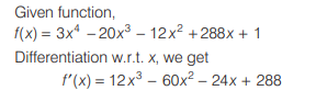 Mathematics NDA/NA SOLVED PAPER 2019 (II) (51 to 100)Total Questions: 5031. Simplify the equation?(a)(b)(c)(d)Correct Answer: (d)Solution:32. Simplify the question?(a)(b)(c)(d)Correct Answer: (d)Solution:33. Which one of the following is the differential equation that represents the family of curves y = 1/2x² - C, where C is an arbitrary constant?(a)(b)(c)(d)Correct Answer: (d)Solution:34. What is dy/dx at x = 1 equal to?Question:- (84 to 85) Read the following information and answer the two items that follow. Consider the equation xʸ = eˣ⁻ʸ (a) 0(b) 1(c) 2(d) 4Correct Answer: (a) 0Solution:35. What is d²y/dx² at x = 1 equal to?Consider the equation xʸ = eˣ⁻ʸ(a) 0(b) 1(c) 2(d) 4Correct Answer: (b) 1Solution:36. What is the period of the function g(x)?Question:- (86 to 88) Read the following information and answer the three items that follow. Consider the function (a) π(b) 2 π(c) 4π(d) 8πCorrect Answer: (d) 8πSolution:37. What is the period of the function h(x)?(a) π(b) 4π/5(c) 5π/2(d) 3π/2Correct Answer: (c) 5π/2Solution:38. What is the period of the function f(x)?(a) 10π(b) 20π(c) 40π(d) 80πCorrect Answer: (c) 40πSolution:39. In which one of the following intervals is the function increasing?Question:- (89 to 90) Read the following information and answer the two items that follow. consider the function f(x) = 3x⁴ - 20x³ - 12x² + 288x + 1(a) (-2, 3)(b) (3, 4)(c) (-3, 2)(d) (-4, -3)Correct Answer: (b) (3, 4)Solution:40. In which one of the following intervals is the function decreasing?f(x) = 3x⁴ - 20x³ - 12x² + 288x + 1(a) (-2, 3)(b) (3, 4)(c) (4, 6)(d) (6, 9)Correct Answer: (a) (-2, 3)Solution:Submit Quiz« Previous12345Next »