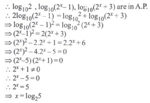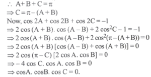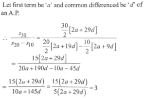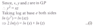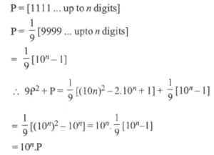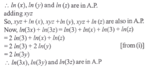 Mathematics NDA/NA SOLVED PAPER 2021-II (01 to 50)Total Questions: 5011. Let ABC be a triangle. If cos 2A + cos 2B + cos 2C = - 1 then which one of the following is correct?(a) sin A sin B sin C = 0(b) sin A sin B cos C = 0(c) cos A sin B sin C = 0(d) cos A cos cos C = 0Correct Answer: (d) cos A cos cos C = 0Solution:12. What is the value of the following determinant?(a) -1(b) 0(c) 2tan A sin B sin C(d) - 2tan A sin B sin CCorrect Answer: (b) 0Solution:cos C (tan A. sin B) - tan A (sin B . cos C) = 0.13. Suppose set A consists of first 250 natural numbers that are multiples of 3 and set B consists of first 200 even natural numbers. How many elements does A ∪ B have?(a) 324(b) 364(c) 384(d) 400Correct Answer: (c) 384Solution:14. Let Sₖ denote the sum of first k terms of an AP. What is S₃₀/ S₂₀ - S₁₀ equal to?(a) 1(b) 2(c) 3(d) 4Correct Answer: (c) 3Solution:15. If the roots of the equation 4x²- (5k + 1)x + 5k = 0 differ by unity, then which one of the following is a possible value of k?(a) -3(b) -1(c) - 1/5(d) - 3/5Correct Answer: (c) - 1/5Solution:16. x² + x + 1 = 0 then what is the value of x¹⁹⁹ + x²⁰⁰ + x²⁰¹?(a) -1(b) 0(c) 1(d) 3Correct Answer: (b) 0Solution:17. If x, y, z are in GP, then which of the following is/are correct?1. ln(3x), In (3y), In (3z) are in AP 2. xyz +ln(), xyz + ln(y), xyz + ln(z) are in HP Select the correct answer using the code given below.(a) 1 only(b) 2 only(c) Both 1 and 2(d) Neither 1 nor 2Correct Answer: (a) 1 onlySolution:18. If log₁₀ 2, log₁₀(2ˣ - 1), log₁₀(2ˣ + 3) are in AP, then what is x equal to?(a) 0(b) 1(c) log₂ 5(d) log₅ 2Correct Answer: (c) log₂ 5Solution:19. Let S = {2, 3, 4, 5, 6, 7, 9}. How many different 3-digit numbers (with all digits different) from S can be made which are less than 500?(a) 30(b) 49(c) 90(d) 147Correct Answer: (c) 90Solution:n(s) = 7 For 3 digit numbers less than 500 (recetion not allowed) Numbers of digits choice for hundred place (2, 3, 4) = 3 Numbers of digits choice for tens place = 6 Numbers of digits choice for once place = 5 Total numbers of 3 digit numbers less than 500 = 3 × 6 × 5 = 9020. If p =(1111.....up to n digits), then what is the value of 9p² + p(a) 10ⁿ p(b) 2p. 10ⁿ(c) 10ⁿ p - 1(d) 10ⁿ p + 1Correct Answer: (a) 10ⁿ pSolution:Submit Quiz« Previous12345Next »