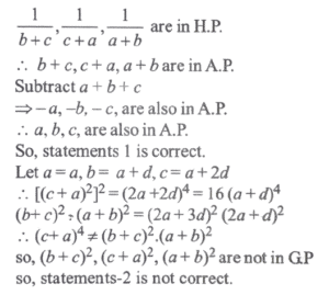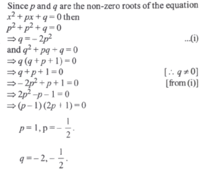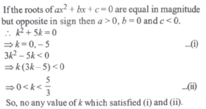 Mathematics NDA/NA SOLVED PAPER 2021-II (01 to 50)Total Questions: 5021. The equation 3x² - (k² + 5k) x + 3k² - 5k = 0 has real roots of equal magnitude and opposite sign. Which one of the following is correct?(a) 0 < k < 5/3(b) 0 < k < 3/5 only(c) 3/5 < k < 5/3(d) No such value of k existsCorrect Answer: (d) No such value of k existsSolution:22. If aₙ = n(n!) then what is a₁ + a₂+ a₃ +______+a₁₀ equal to?(a) 10! - 1(b) 11! + 1(c) 10! + 1(d) 11! - 1Correct Answer: (d) 11! - 1Solution:23. If p and q are the non-zero roots of the equation x² + px + q = 0, then how many possible values can q have?(a) Nil(b) One(c) Two(d) ThreeCorrect Answer: (c) TwoSolution:24. equal to?(a) Δ(b) 7 Δ(c) 72 Δ(d) -72 ΔCorrect Answer: (d) -72 ΔSolution:25. If 1/(b + c), 1/(c + a), 1/(a + b) are in HP, then Which of the following is/are correct?1. a, b, c are in AP 2. (b + c)², (c + a)², (a + b)² are in GP Select the correct answer using the code given below.(a) 1 only(b) 2 only(c) Both 1 and 2(d) Neither 1 nor 2Correct Answer: (a) 1 onlySolution:26. equal to?(b) -I(a) -2I(c) 2I(d) ICorrect Answer: (a) -2ISolution:27. Find the value?(a) -4(b) -2(c) 2(d) 4Correct Answer: (a) -4Solution:28. equal to?(a) -1(b) 1(c) i(d) -iCorrect Answer: (a) -1Solution:29. Find the value?(a) Straight line(b) Parabola(c) Circle(d) Pair of straight linesCorrect Answer: (c) CircleSolution:30. Which one of the following is a square root of 2a + 2√(a² + b²), where a, b ∈ R?(a)(b)(c)(d)Correct Answer: (a)Solution:Submit Quiz« Previous12345Next »