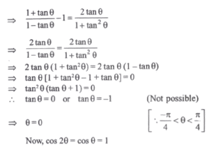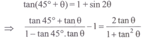 MATHEMATICS (NDA/NA SOLVED PAPER 2022-I) (01 to 50)Total Questions: 5021. What is the maximum value of n such that 5ⁿ divides (30! + 35!) where n is a natural number?(a) 4(b) 6(c) 7(d) 8Correct Answer: (c) 7Solution:22. What is the value of2(2 × 1) + 3(3 × 2 × 1) + 4(4 × 3 × 2 × 1) + 5(5 × 4 × 3 × 2 × 1) +________+9(9 × 8 × 7 × 6 × 5 × 4 × 3 × 2 × 1) + 2?(a) 11!(b) 10!(c) 10 + 10!(d) 11 + 10!Correct Answer: (b) 10!Solution:23. A = {(1, 2, 3)}, then how many elements are there in the power set of A?(a) 1(b) 2(c) 4(d) 8Correct Answer: (b) 2Solution:A = {(1,2,3)} n(A) = 1 Number of element in P(A) = 2¹ = 224. If a, b, c are in GP where a > 0, b > 0, c > 0 then which of the following are correct?1. a² b² c² in GP 2 1/a, 1/b, 1/c are in GP 3. √a, √b, √c are in GP Select the correct answer using the code given below:(a) 1 and 2 only(b) 2 and 3 only(c) 1 and 3 only(d) 1, 2 and 3Correct Answer: (d) 1, 2 and 3Solution:25. If (a + b)/2, b, (b + c)/2 are in HP, then which one of the following is correct?(a) a, b, c are in AP(b) a, b, c are in GP(c) a + b, b + c, c + a are in GP(d) a + b, b + c, c + a are in APCorrect Answer: (b) a, b, c are in GPSolution:26. What is value of cot²15° + tan²15°?(a) 12(b) 14(c) 8√3(d) 4Correct Answer: (b) 14Solution:27. What is angle B equal to?In a triangle ABC, sin A - cos B - cos C = 0.(a) π/6(b) π/4(c) π/3(d) π/2Correct Answer: (d) π/2Solution:28. If α+ β = π/4 and 2tanα = 1, then what is tan 2β equal to?(a) 1/3(b) 2/3(c) 3/4(d) 3/5Correct Answer: (c) 3/4Solution:29. If tan(45° + θ) = 1 + sin2θ, where -π/4 < θ < π/4 , then what is the value of cos2θ?(a) 0(b) 1/2(c) 1(d) 2Correct Answer: (c) 1Solution:30. Let sin2θ = cos3θ, where θ is acute angle. What is the value of 1 + 4sinθ?(a) √3(b) 2(c) √5(d) 3Correct Answer: (c) √5Solution:Submit Quiz« Previous12345Next »