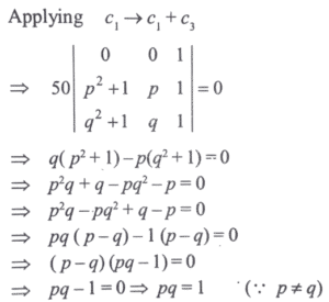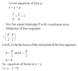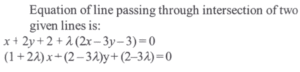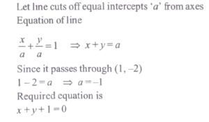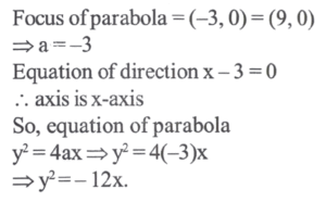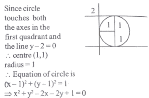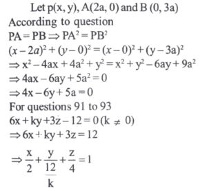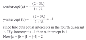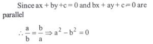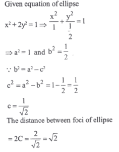MATHEMATICS (NDA/NA SOLVED PAPER 2022-I) (51 to 100)Total Questions: 5031. If the points with coordinates (-5, 0 ), (5p², 10p) and (5q², 10q) are collinear, then what value pq where p ≠ q?(a) -2(b) -1(c) 1(d) 2Correct Answer: (c) 1Solution:32. What is the equation of the straight line which passes through the point (1, -2) and cuts off equal intercepts from the axes?(a) x + y - 1 = 0(b) x - y - 1 = 0(c) x + y + 1 = 0(d) x - y - 2 = 0Correct Answer: (c) x + y + 1 = 0Solution:33. What is the equation of the circle which touches both the axes in the first quadrant and the line y - 2 = 0?(a) x² + y² - 2x - 2y - 1 = 0(b) x² + y² + 2x + 2y + 1 = 0(c) x² + y² - 2x - 2y + 1 = 0(d) x² + y² - 4x - 4y + 4 = 0Correct Answer: (c) x² + y² - 2x - 2y + 1 = 0Solution:34. What is the equation of the parabola with focus (-3, 0) and directrix x - 3 = 0?(a) y² = 3x(b) x² = 12y(c) y² = 12x(d) y² = - 12xCorrect Answer: (d) y² = - 12xSolution:35. What is the distance between the foci of the ellipse x²+ 2y² = 1?(a) 1(b) √2(c) 2(d) 2√2Correct Answer: (b) √2Solution:36. Let a, b, c be the lengths of sides BC, CA, AB respectively of a triangle ABC. If p is the perimeter and q is the area of the triangle, then what is p(p - 2a) tan(A/2) equal to?(a) q(b) 2q(c) 3q(d) 4qCorrect Answer: (d) 4qSolution:37. A straight line passes through the point of intersection of x + 2y + 2 = 0 and 2x - 3y - 3 = 0. It cuts equal intercepts in fourth quadrant. What is the sum of the absolute values of the intercepts?(a) 2(b) 3(c) 4(d) 6Correct Answer: (a) 2Solution:38. Under which one of the following conditions are the lines ax + by + c = 0 and bx + ay + c = 0 parallel ( a ≠ 0, b ≠ 0)?(a) a - b = 0 only(b) a + b = 0 only(c) a² - b² = 0(d) ab + 1 = 0Correct Answer: (c) a² - b² = 0Solution:39. What is the equation of the locus of the mid-point of the line segment obtained by cutting the line x + y = p (where p is a real number) by the coordinate axes?(a) x - y = 0(b) x + y = 0(c) x - y = p(d) x + y = pCorrect Answer: (a) x - y = 0Solution:40. If the point (x, y) is equidistant from the points (2a, 0) and (0, 3a) where a > 0, then which one of the following is correct?(a) 2x - 3y = 0(b) 3x - 2y = 0(c) 4x - 6y + 5a = 0(d) 4x - 6y - 5a = 0Correct Answer: (c) 4x - 6y + 5a = 0Solution:Submit Quiz« Previous12345Next »