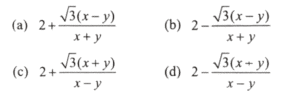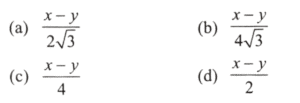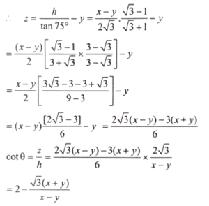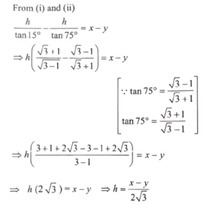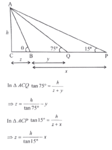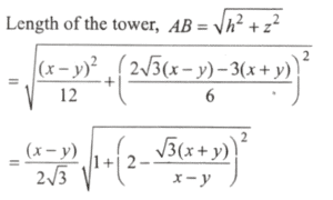 There are two points P and Q due south of a leaning tower, which leans towards north. P is at a distance x and Q is at a distance y from the foot of the tower (x > y). The angles of elevation of the top of the tower from P and Q are 15° and 75° respectively.