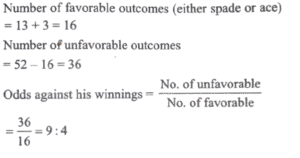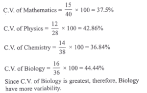 Mathematics (NDA/NA SOLVED PAPER 2022-II) (101 to 120)Total Questions: 2011. A box contains 2 white balls, 3 black balls and 4 red balls. What is the number of ways of drawing 3 balls from the box with at least one black ball?(a) 84(b) 72(c) 64(d) 48Correct Answer: (c) 64Solution:12. During war one ship out of 5 was sunk on an average in making a certain voyage. What is the probability that exactly 3 out of 5 ships would arrive safely?(a) 16/625(b) 32/625(c) 64/625(d) 128/625Correct Answer: (d) 128/625Solution:13. A card is drawn from a pack of 52 cards. A gambler bets that it is either a spade or an ace. The odds against his winning are(a) 9 : 4(b) 35 : 17(c) 17 : 35(d) 4 : 9Correct Answer: (a) 9 : 4Solution:14. The coefficient of correlation between ages of husband and wife at the time of marriage for a given set of 100 couples was noted to be 0-7. Assume that all these couples survive to celebrate the silver jubilee of their marriage. The coefficient of correlation at that point of time will be(a) 1(b) 0.9(c) 0.7(d) 0.3Correct Answer: (c) 0.7Solution:15. The completion of a construction job may be delayed due to strike. The probability of strike is 0 . 6. The probability that the construction job gets completed on time if there is no strike is 0 . 85 and the probability that the construction job gets completed on time if there is a strike is 0 . 35. What is the probability that the construction job will not be completed on time?(a) 0.35(b) 0.45(c) 0.55(d) 0.65Correct Answer: (b) 0.45Solution:16. Which one of the following subjects shows highest variability of marks?The mean and standard deviation (SD) of marks obtained by 50 students of a class in 4 subjects are given below:SubjectMathematicsPhysicsChemistryBiologyMean Marks40283836SD15121416(a) Mathematics(b) Physics(c) Chemistry(d) BiologyCorrect Answer: (d) BiologySolution:17. What is the coefficient of variation marks in Mathematics?The mean and standard deviation (SD) of marks obtained by 50 students of a class in 4 subjects are given below:SubjectMathematicsPhysicsChemistryBiologyMean Marks40283836SD15121416(a) 37.5%(b) 38.0%(c) 38.5%(d) 39.0%Correct Answer: (a) 37.5%Solution:C.V. of mathematics = 37.5%18. What is the median of the distribution?Consider the following grouped frequency distribution:Class0–1010–2020–3030–4040–5050–60Frequency124643(a) 34(b) 34.5(c) 35(d) 35.5Correct Answer: (c) 35Solution:Class0–1010–2020–3030–4040–5050–60fi124643C.F.13713172019. What is mean deviation about the median?Consider the following grouped frequency distribution:Class0–1010–2020–3030–4040–5050–60Frequency124643(a) 11.4(b) 11.1(c) 10.8(d) 10.5Correct Answer: (d) 10.5Solution:Class0-1010-2020-3030-4040-5050-60Totalxi51525354555|xi - Me|30201001020fi12464320fi |xi - Me| 3040400406021020. What is the mean deviation about the mean?Consider the following grouped frequency distribution:Class0–1010–2020–3030–4040–5050–60Frequency124643(a) 10.15(b) 10.65(c) 11.15(d) 11.65Correct Answer: (b) 10.65Solution:Class0-1010-2020-3030-4040-5050-60Totalfi12464320xi51525354555xi fi530100210180165690|xi −ˣ̄|29.519.59.50.510.520.5fi |xi −ˣ̄|29.5393834261.5213Submit Quiz« Previous12
