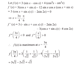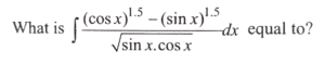 Mathematics (NDA/NA SOLVED PAPER 2022-II) (51 to 100)Total Questions: 5021. Let z = [y] and y = [x] - x,1 where [.] is the greatest integer function. If x is not an integer but positive, then what is the value of z?(a) - 1(b) 0(c) 1(d) 2Correct Answer: (a) - 1Solution:22. If f(x) = 4x + 1 and g(x) = kx + 2 such that fog(x) = gof (x), then what is the value of k?(a) 7(b) 5(c) 4(d) 3Correct Answer: (a) 7Solution:23. What is the minimum value of the function f(x) = log₁₀(x² + 2x + 11) ?(a) 0(b) 1(c) 2(d) 10Correct Answer: (b) 1Solution:24. Find the value?(a)(b)(c)(d)Correct Answer: (b)Solution:25. What is ∫ eˣ (1 + lnx + xlnx)dx equal to?(a)(b)(c)(d)Correct Answer: (a)Solution:26. Find the value?(a)(b)(c)(d)Correct Answer: (c)Solution:27. Find the value?(a)(b)(c)(d)Correct Answer: (c)Solution:28. If y = (xˣ)ˣ then which one of the following is correct?(a)(b)(c)(d)Correct Answer: (b)Solution:29. What is the maximum value of 3(sin x - cos x) + 4(cos³ x - sin³ x )?(a) 1(b) √2(c) √3(d) 2Correct Answer: (b) √2Solution:30. What is the area of the region (in the first quadrant) bounded by y = √1 - x², y = x and y = 0 ?(a) π/4(b) π/6(c) π/8(d) π/12Correct Answer: (c) π/8Solution:Submit Quiz« Previous12345Next »