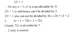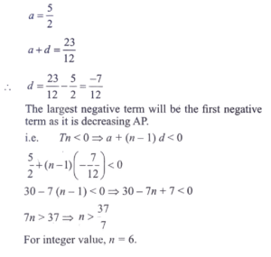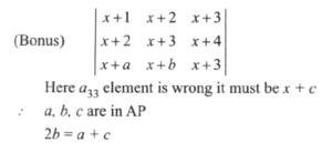 Mathematics (NDA/NA SOLVED PAPER 2023-I) (01 to 50)Total Questions: 5011. If 2 -i√3 where i = √-1 is a root of the equation x² + ax + b = 0, then what is the value of (a + b)?(a) -11(b) -3(c) 0(d) 3Correct Answer: (d) 3Solution:12. Find value?(a) π/3(b) 2π/3(c) 4π/3(d) 5π/6Correct Answer: (b) 2π/3Solution:13. If a,b,c are in AP, then what is(a) -1(b) 0(c) 1(d) 2Correct Answer: (b) 0Solution:14. If logxa, ax and logbx are in G.P, then what is x equal to?(a)(b)(c)(d)Correct Answer: (c)Solution:15. Find ?(a) a, b, c are in AP(b) a, b, c are in GP(c) a, b, c are in HP(d) ab, bc, ca are in APCorrect Answer: (a) a, b, c are in APSolution:16. The first and the second terms of an AP are 5/2 and 23/12 respectively. If nᵗʰ terms is the largest negative term, what is the value of n?(a) 5(b) 6(c) 7(d) n cannot be determinedCorrect Answer: (b) 6Solution:17. For how many integral values of k, the equation x² - 4x + k = 0, where k is an integer, has real roots and both of them he in the interval (0, 5)?(a) 3(b) 4(c) 5(d) 6Correct Answer: (b) 4Solution:18. In an AP, the first term is x and the sum of the first n terms is zero. What is the sum of next m terms?(a)(b)(c)(d)Correct Answer: (b)Solution:19. Consider the following statements:1. (25)! +1 is divisible by 26| 2. (6)! + 1 is divisible by 7 Which of the above statement is/are correct?(a) 1 only(b) 2 only(c) Both 1 and 2(d) Neither 1 nor 2Correct Answer: (b) 2 onlySolution:20. If z is a complex number such that (z - 1)/(z + 1) is purely imaginary, then what is |z| equal to?(a) 1/2(b) 2/3(c) 1(d) 2Correct Answer: (c) 1Solution:Submit Quiz« Previous12345Next »